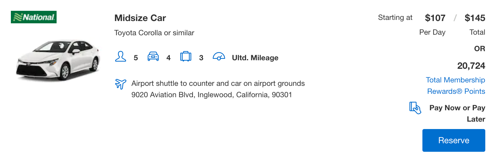 Rental cars aren't cheap these days. The "rental car apocalypse" has caused a vehicle shortage and exorbitant price hikes on rental cars. And while I only had 2,000 points left from my earned 100,000-point Platinum Card welcome bonus, I knew I was better off paying cash rather than using points for a rental car.