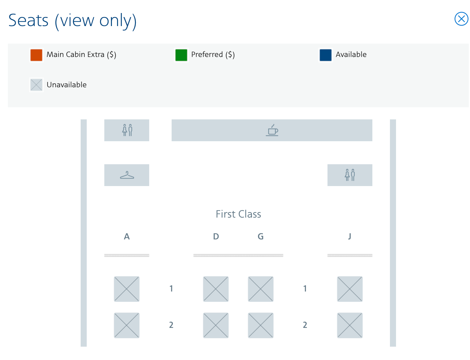 The 777-300ER first-class cabin is small, with only two rows of 1-2-1 seating on Flagship First for a total of eight first-class seats.