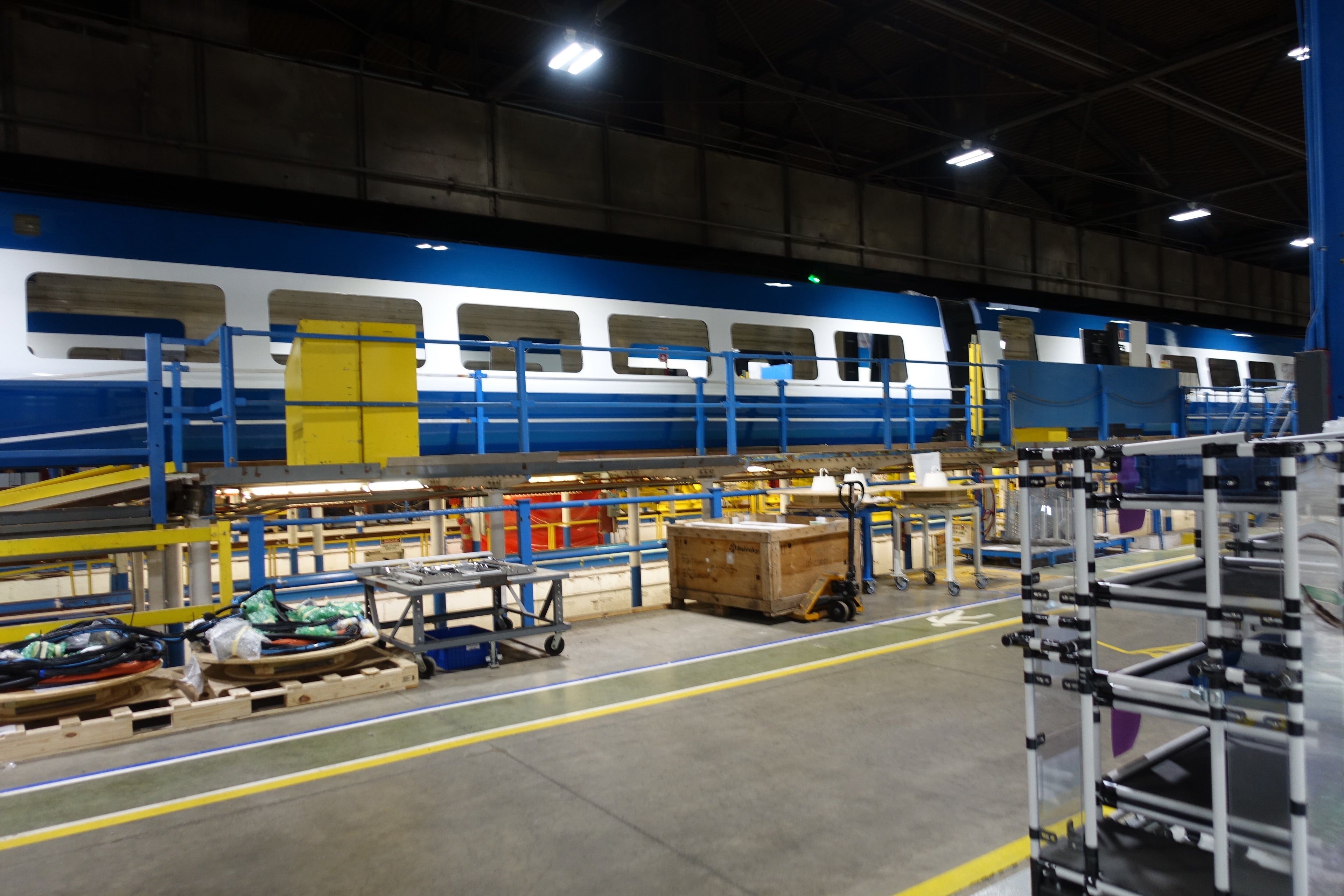 Currently, the new Acelas are coming together at the Alstom facility in Hornell, New York. The place is massive — with three locations throughout the small town, it contains about 700,000 square feet combined dedicated to building, repairing and testing trains on a track almost a mile long.