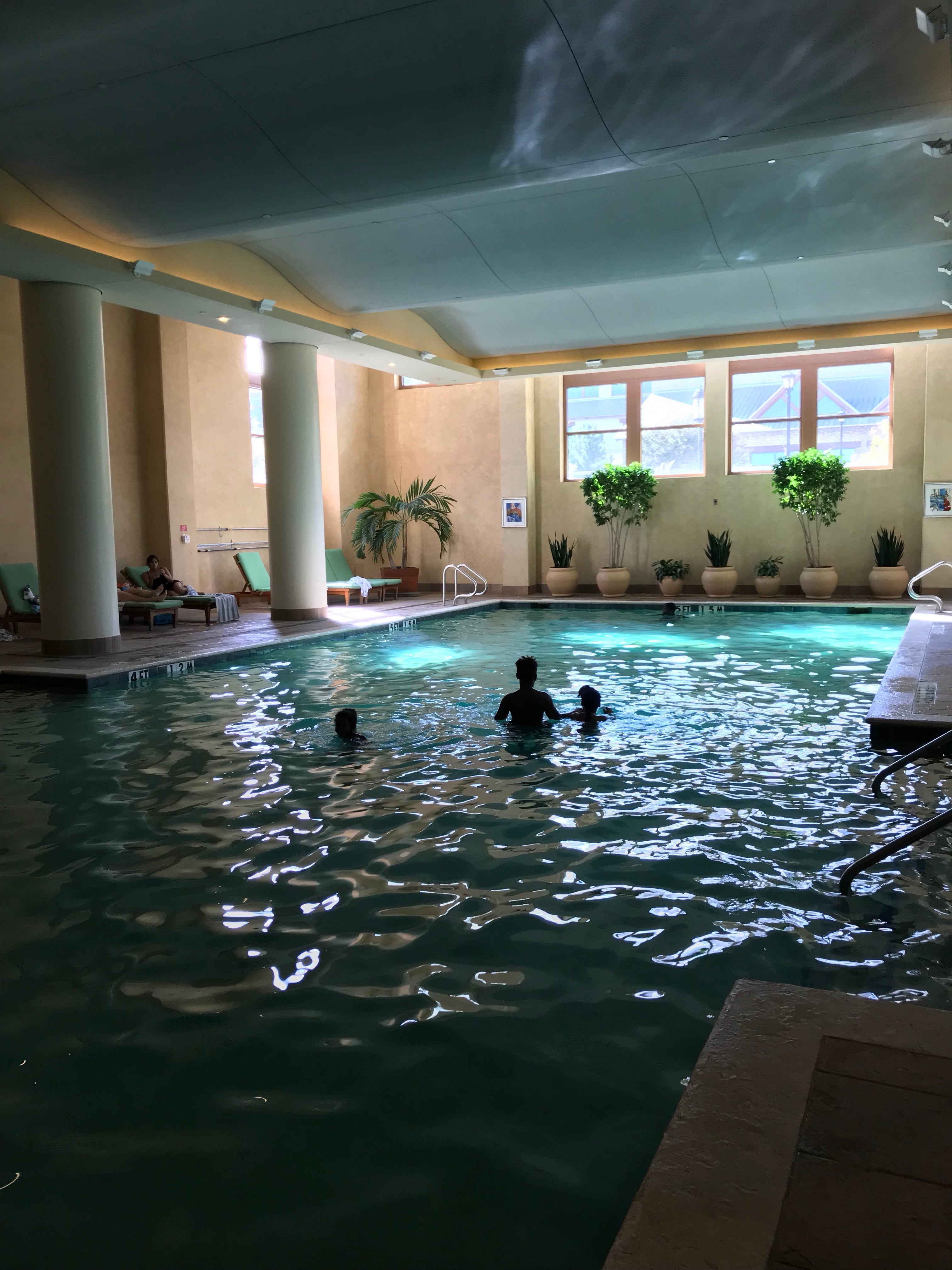 The resort itself has both an indoor and outdoor heated pool available, which is great for year-round fun! The indoor pool was much larger than expected, though the outdoor pool, while quite nice, was smaller than I would have guessed for a resort with 1,000+ rooms. However, after I left the resort I learned there is also an entire separate water park that is open during the summer that you get wristbands for when staying at the Gaylord.