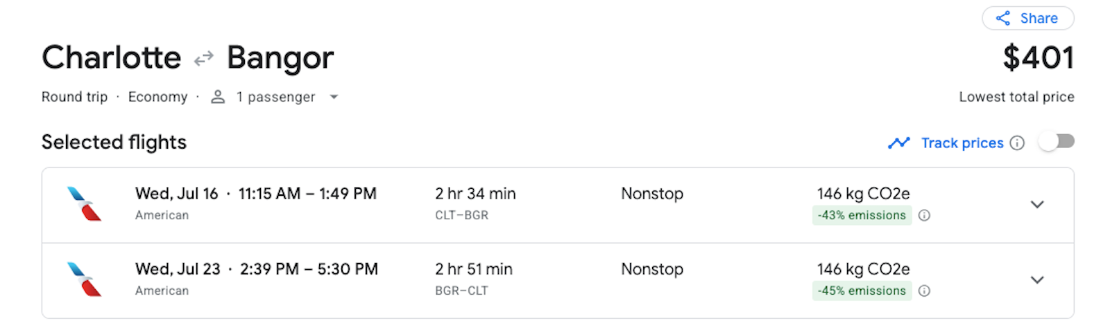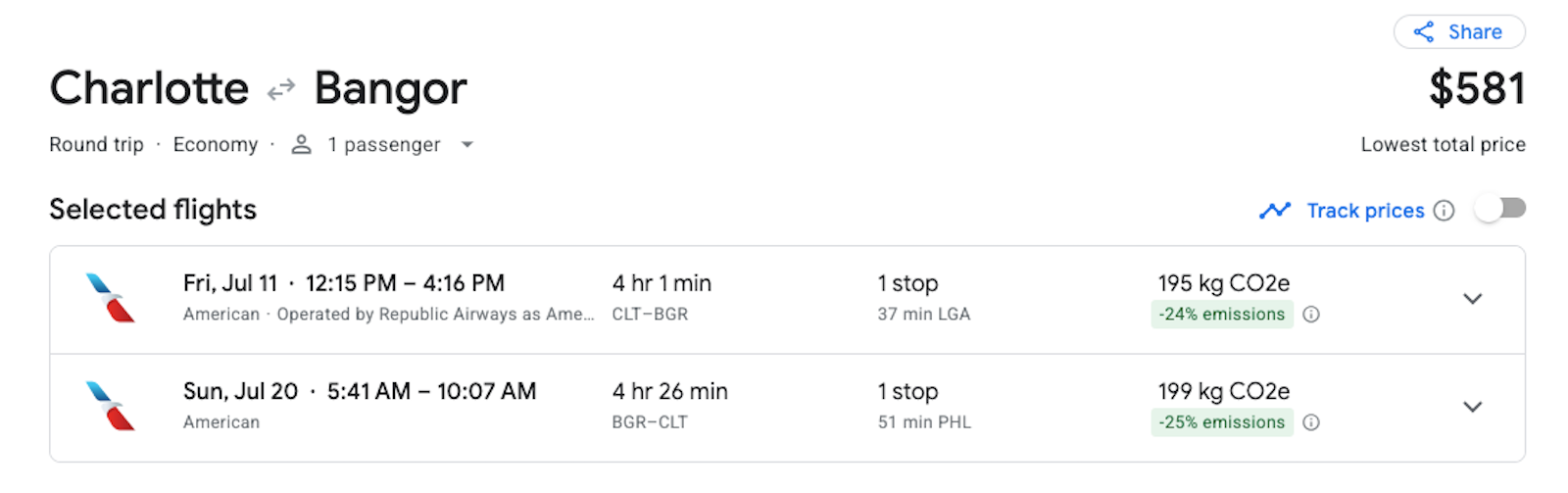 Here's an example. Let's say I'm flying from Charlotte to Bangor, Maine.
