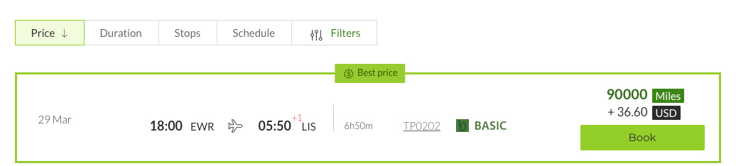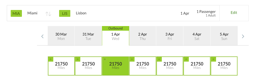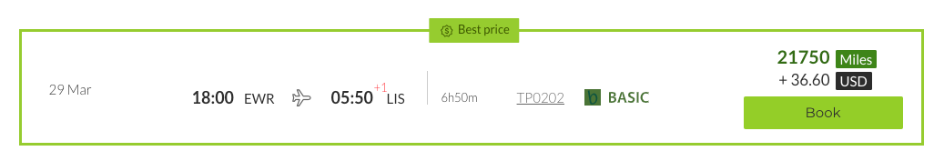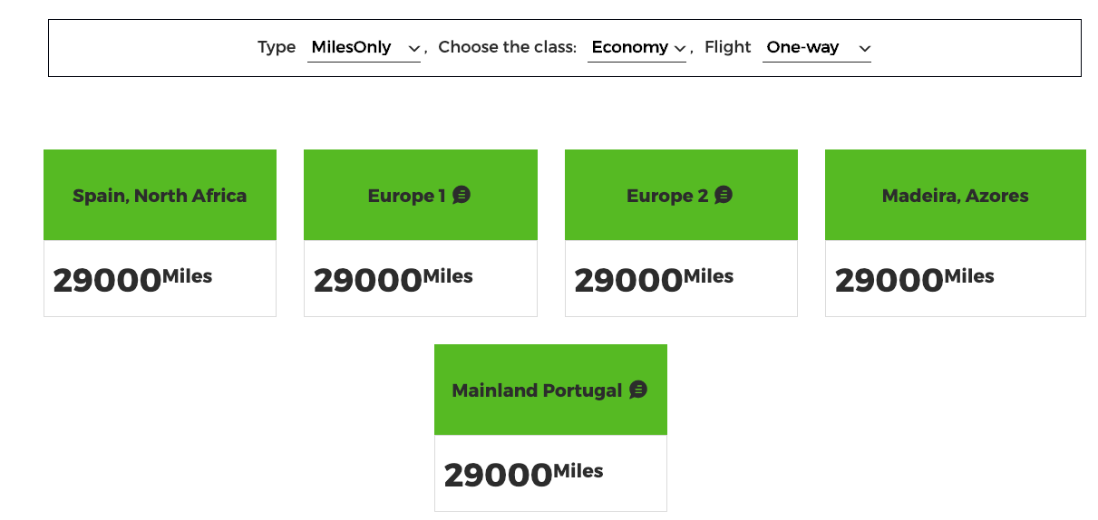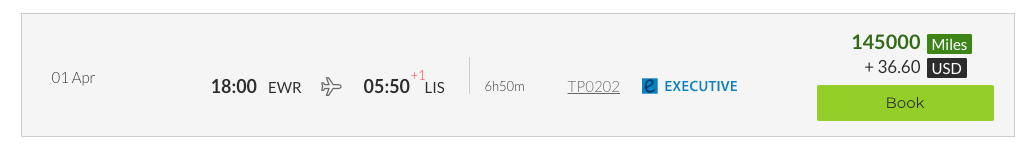 What I found that to mean is TAP can charge whatever they like for award tickets as I searched three months of award availability for TAP Portugal-operated flights from the U.S. and found flights ranging from 21,750 miles (thanks to a 25% savings promotion running through March 8 for travel through March 30) to 90,000 miles for a one-way economy ticket to Lisbon: