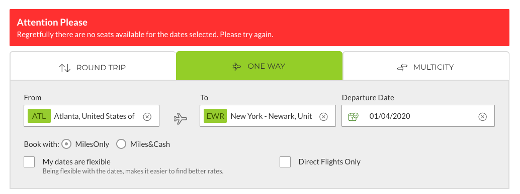 2. The Miles&Go online award search engine can be nonsensical.