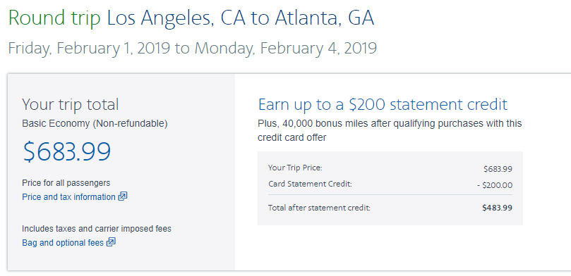 If you're planning to follow your Patriots south for the big game, you have a wide range of options across different classes of service. Again, Delta has some of the best options because you are flying to its hub in ATL, but in the hours since the Patriot's win, the prices on Delta have taken flight. Round-trip prices from Boston to Atlanta now start at $787 on Delta, with awards ringing in at 143,500 SkyMiles on Thursday-Monday -- but as cheap as 17,000 for a Wednesday-Tuesday itinerary.