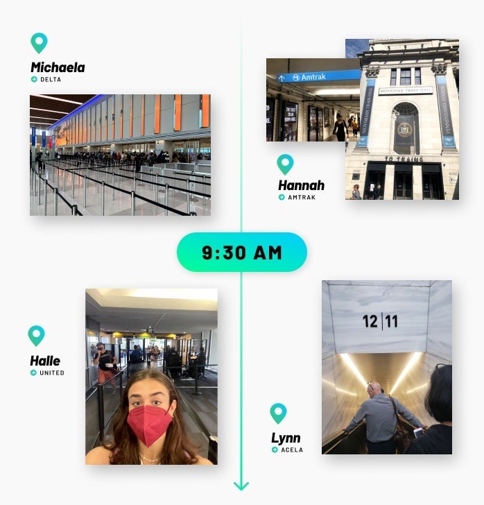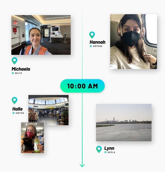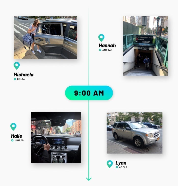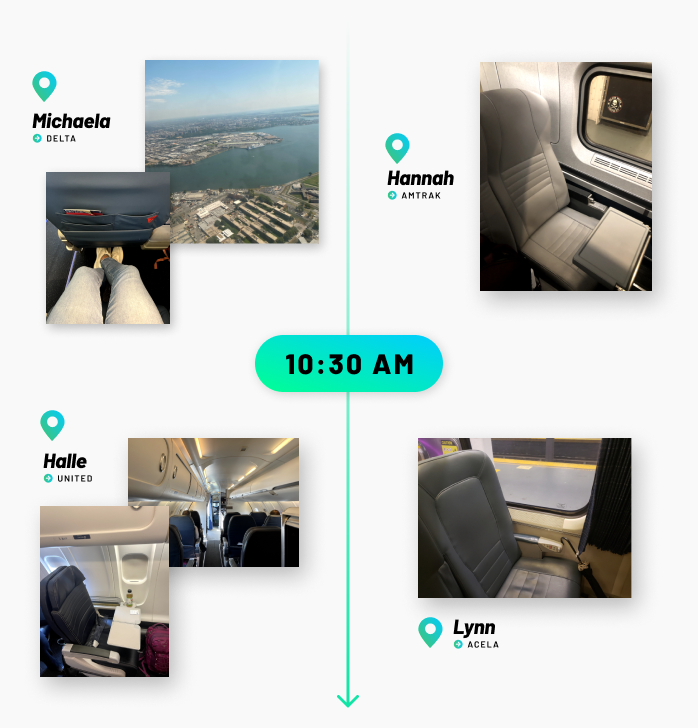 We decided to focus on speed rather than cost, targeting routes that business travelers may take between the two cities. So, we left New York during the morning rush hour on a weekday to simulate a realistic trip. Racers split up between two trains — the Amtrak Northeast Regional and the Amtrak Acela, both departing from New York's Penn Station — and two planes — United and Delta flights, departing from Newark Liberty International Airport (EWR) and LaGuardia Airport (LGA), respectively.