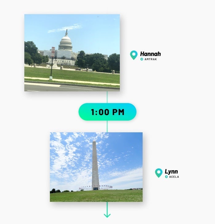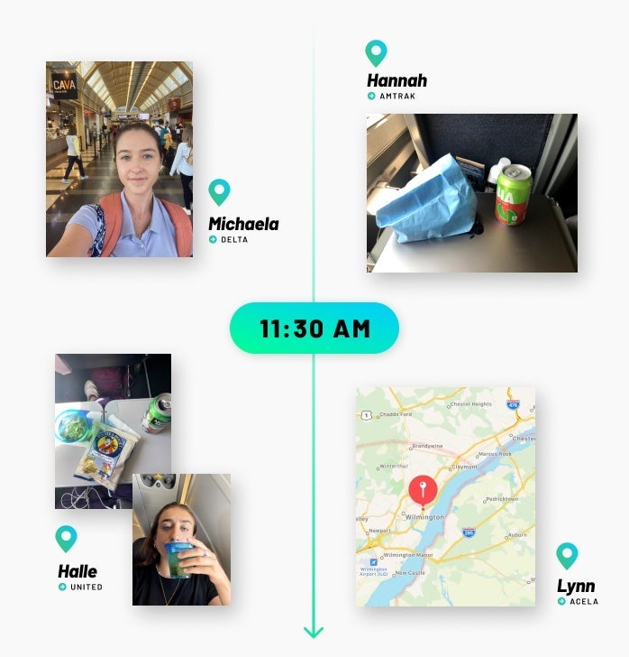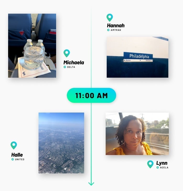 Lynn's train arrived an hour and 46 minutes later than Michaela's flight, but Lynn felt confident that her train would get to D.C. around 1 p.m. and she'd be able to work consistently in the process.
