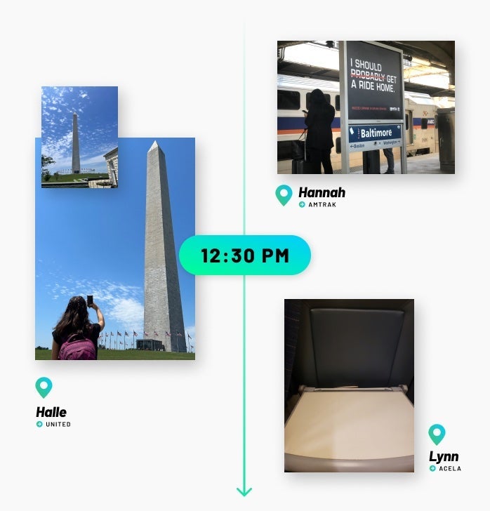 United Airlines: Halle's plane touched down at DCA at 11:58 a.m. She ordered a Lyft and sped off to the Washington Monument.