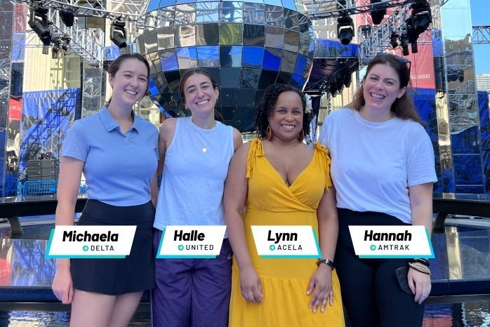 Racers: Hannah Streck (Amtrak Northeast Regional), Lynn Brown (Amtrak Acela), Halle Newman (United Airlines from Newark) and Michaela Barrett (Delta Air Lines from LaGuardia).