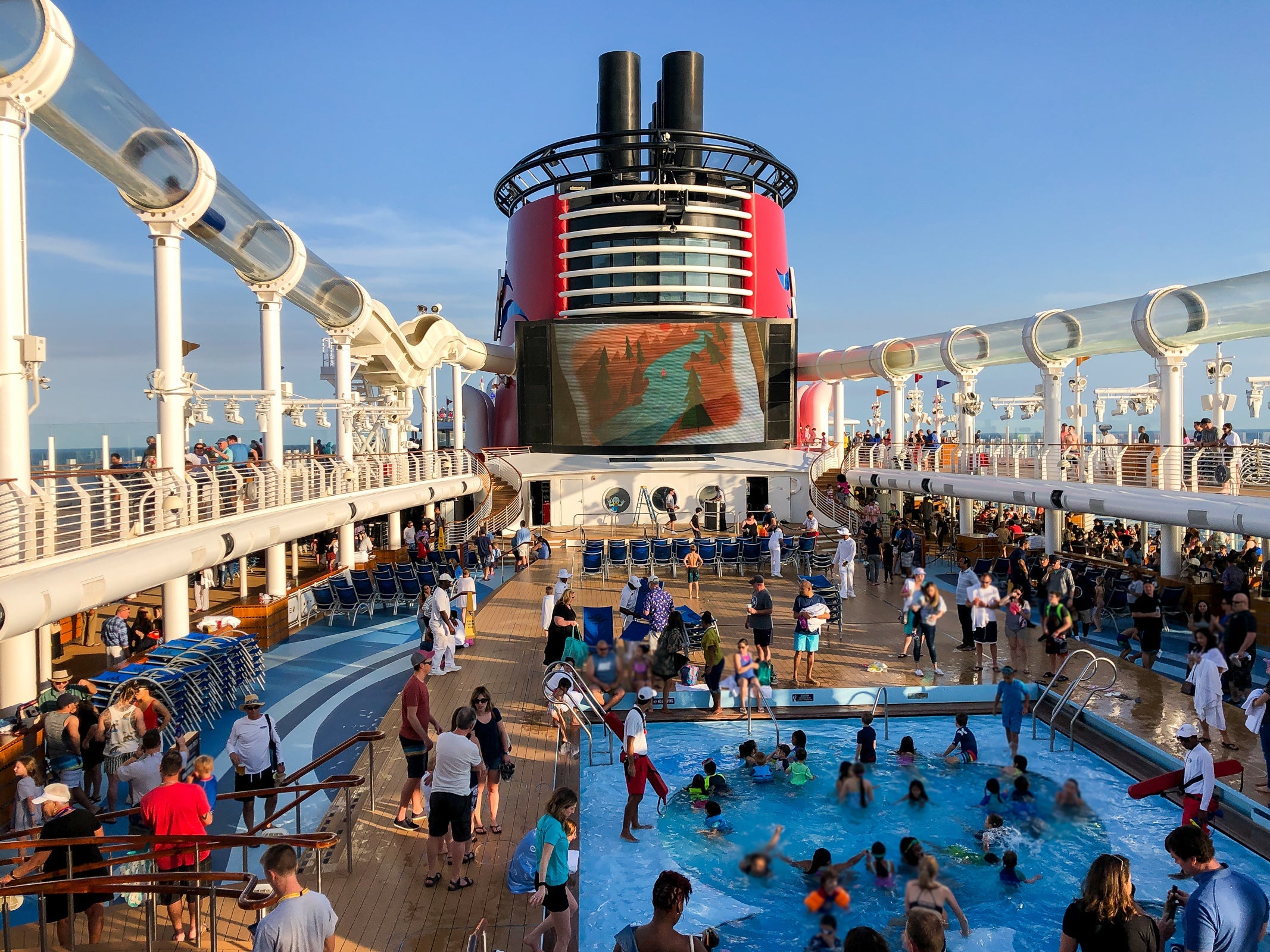 We were assigned an afternoon boarding time on our first cruise, and we made our way to the boat in a leisurely fashion. The second time, our goal was to board as soon as possible to have more time to enjoy the ship. I noticed some families already swimming in the pools when we boarded our first cruise in the afternoon of embarkation day and only later did I learn how genius that was because the pools became too crowded to enjoy after all the passengers arrived.