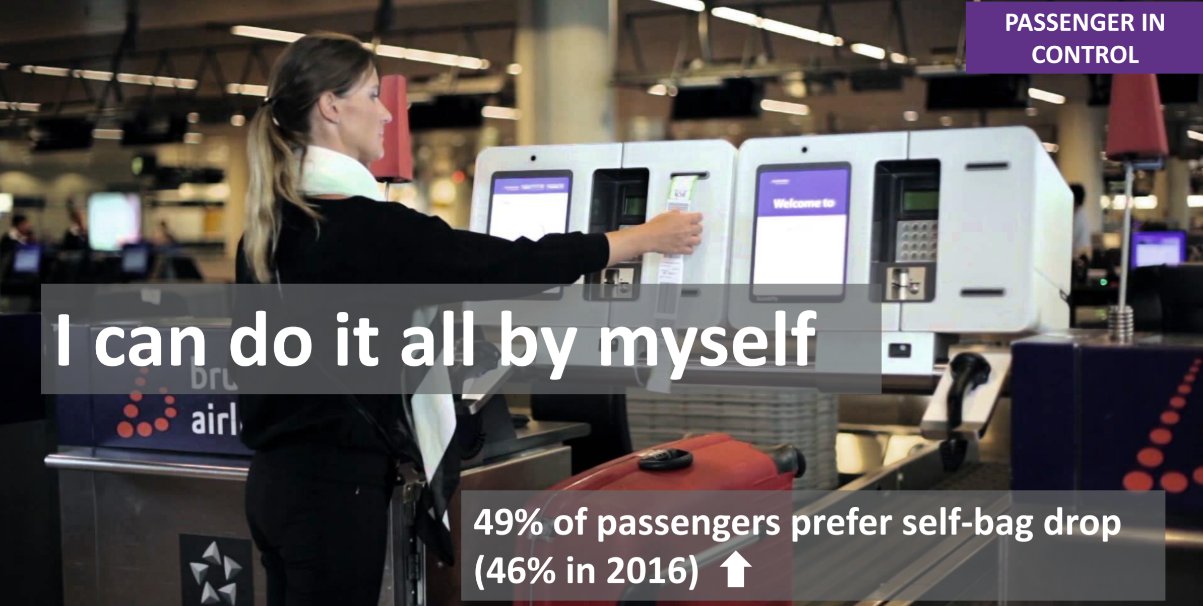 Once you have the bag tagged, just under half of those surveyed said they prefer self-bag drop options.