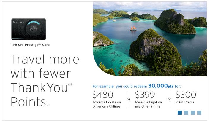 - Citi Prestige: Points are worth 1.33 cents apiece on non-American Airlines tickets, and worth 1.6 cents apiece on American Airlines — though starting July 27, 2017, points will drop to 1.25 cents apiece in value. So some of the redemption examples below won't be available at the same value once this change goes into effect.