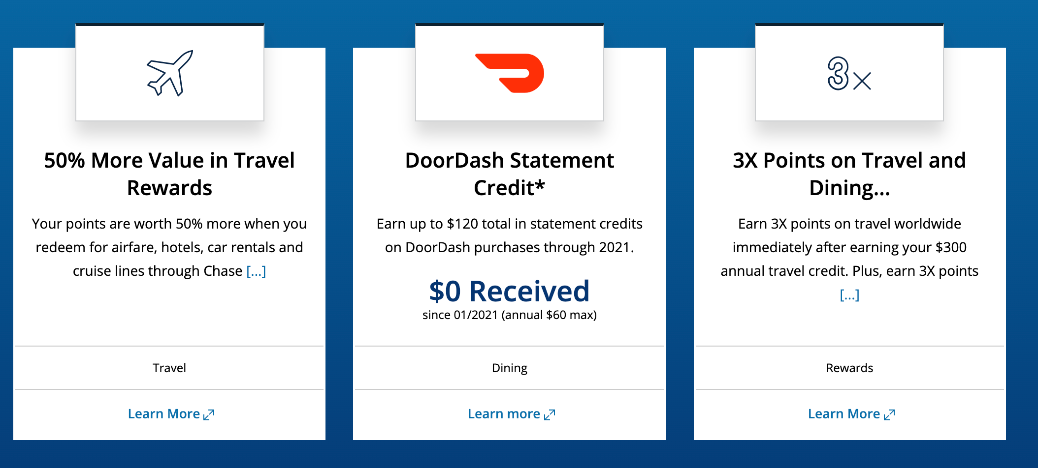 It's fair to say that most of us didn't use our premium travel rewards credit cards the way we initially intended in 2020. Luckily, many premium cards have pivoted to provide benefits in new ways, including offering built-in credits we can use from the safety of our home. Now that we've reached 2021, we hope some of the traditional travel benefits will become more relevant in the coming months, but until then, enjoy that fresh $60 set of DoorDash credits for 2021.