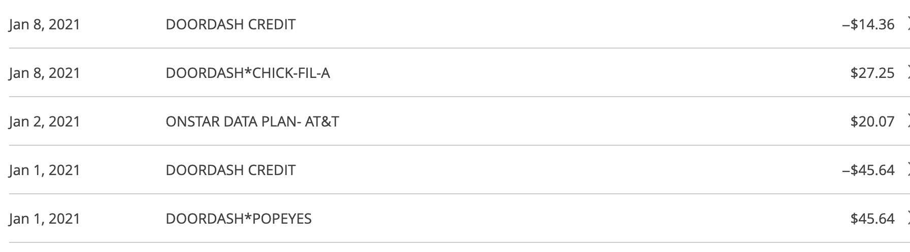 If you lose count of what you've spent, you can check your spending toward the 2021 allotment of the card's $60 DoorDash credit by heading to the online card benefits section of the Chase website and checking the spending total as shown below. Once you go over that $60 credit, you'll have to pay for your orders like normal, but at least you'll earn 3x points per dollar on the charges as dining expenses.