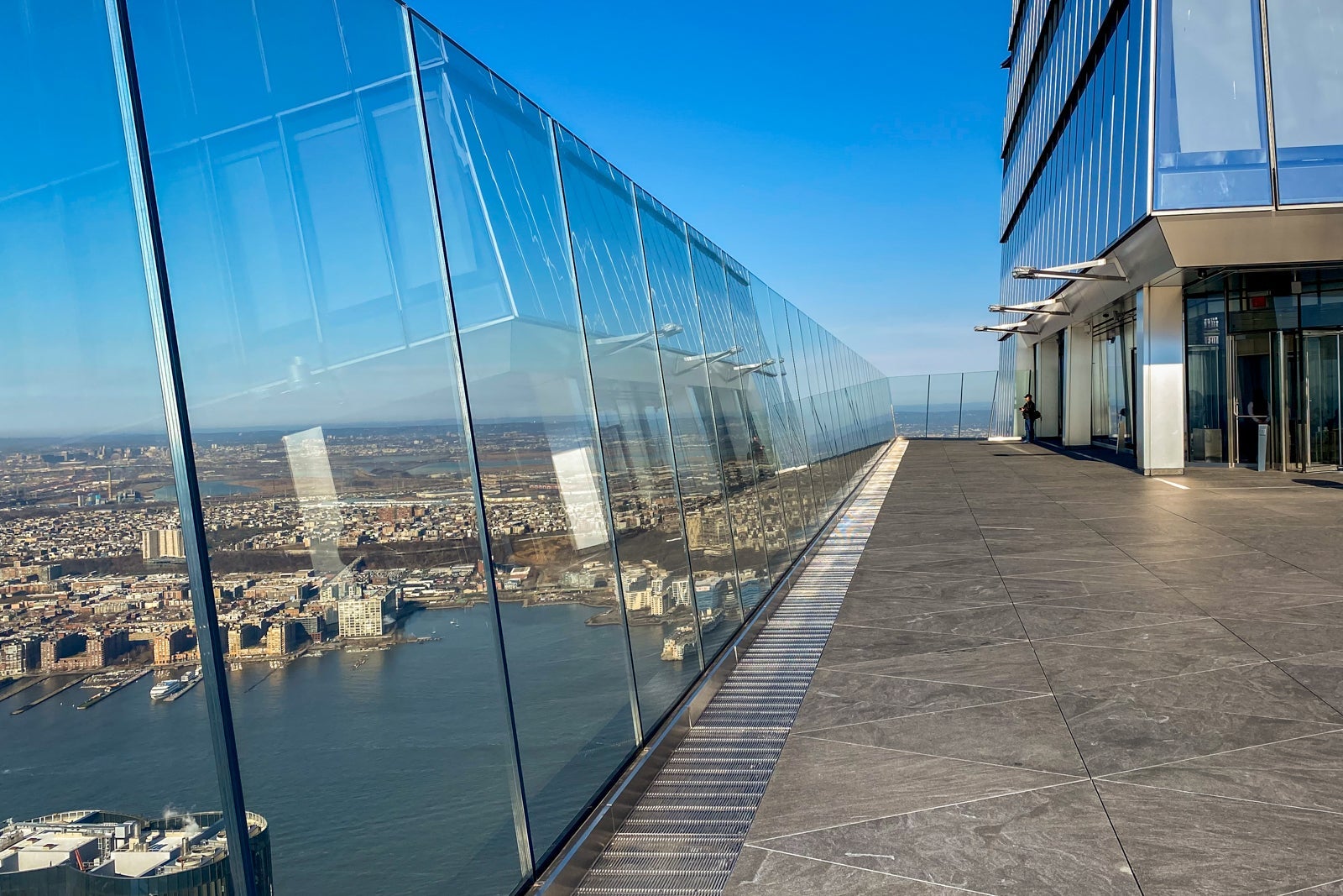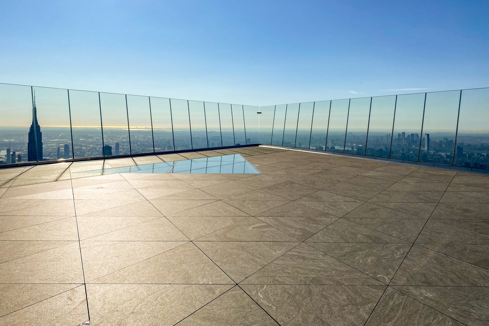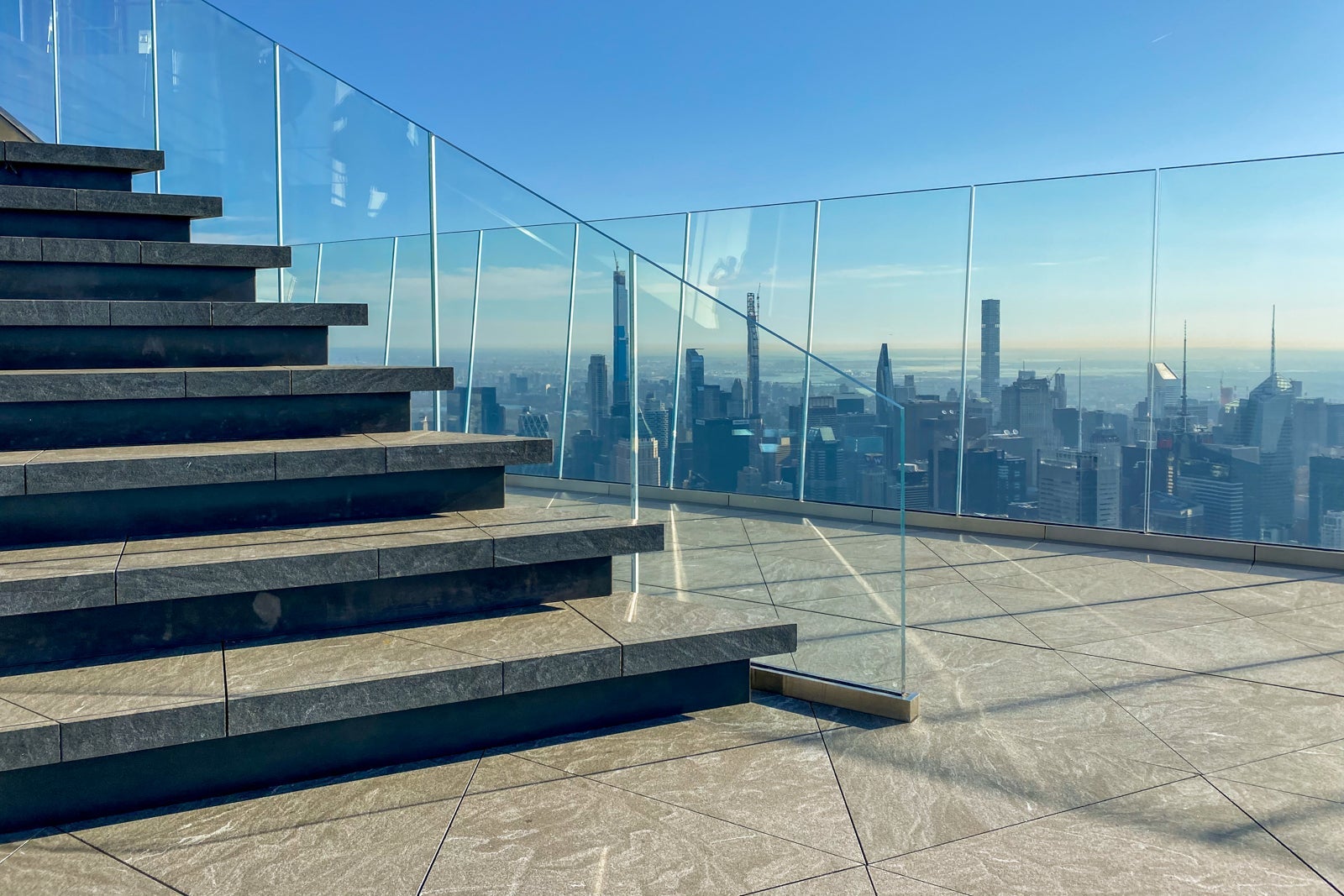Edge features massive 9-foot glass panels pitched outward at a slight angle, which adds to the, well, edgeless experience of the platform. Out here, there are no metal supports to distort your view of the city. In fact, each of the 79 glass panels is separated by an open border designed to give you a totally uninterrupted view — no glass, no glare, just sky — and, theoretically, a perfect photo with your smartphone camera.