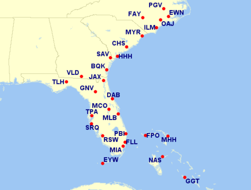Most US airlines have issued weather advisories for Florida, Georgia, South Carolina and North Carolina, allowing flexible travelers the chance to rebook away from the storm. Current waivers cover 24 airports on the US Southeast Coast and four airports in the Bahamas. Here are the latest waivers: