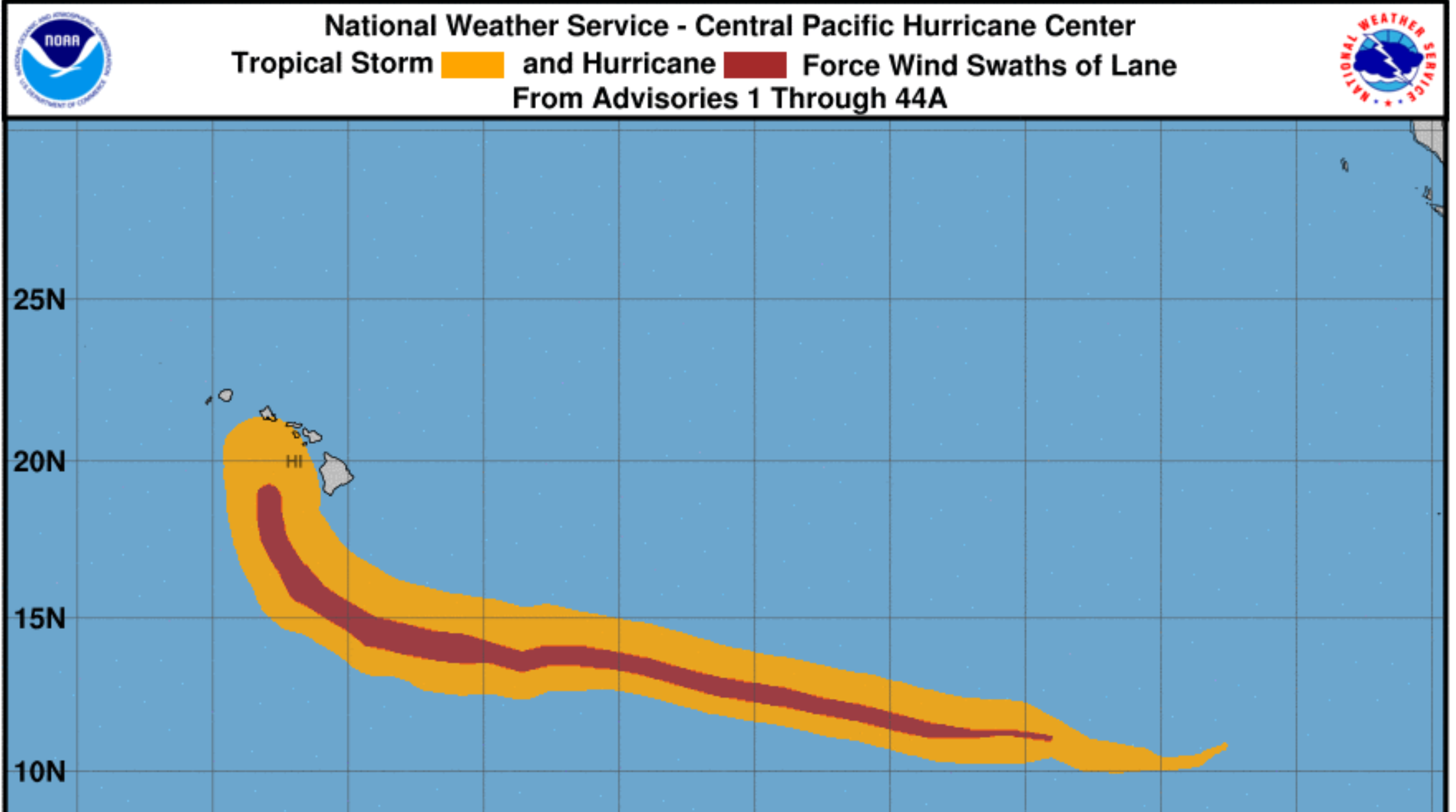 Although the strongest winds never impacted the island, the land interaction has decimated the storm. This satellite image shows how Lane dropped from a Category 3 hurricane to a tropical storm in just eight hours: