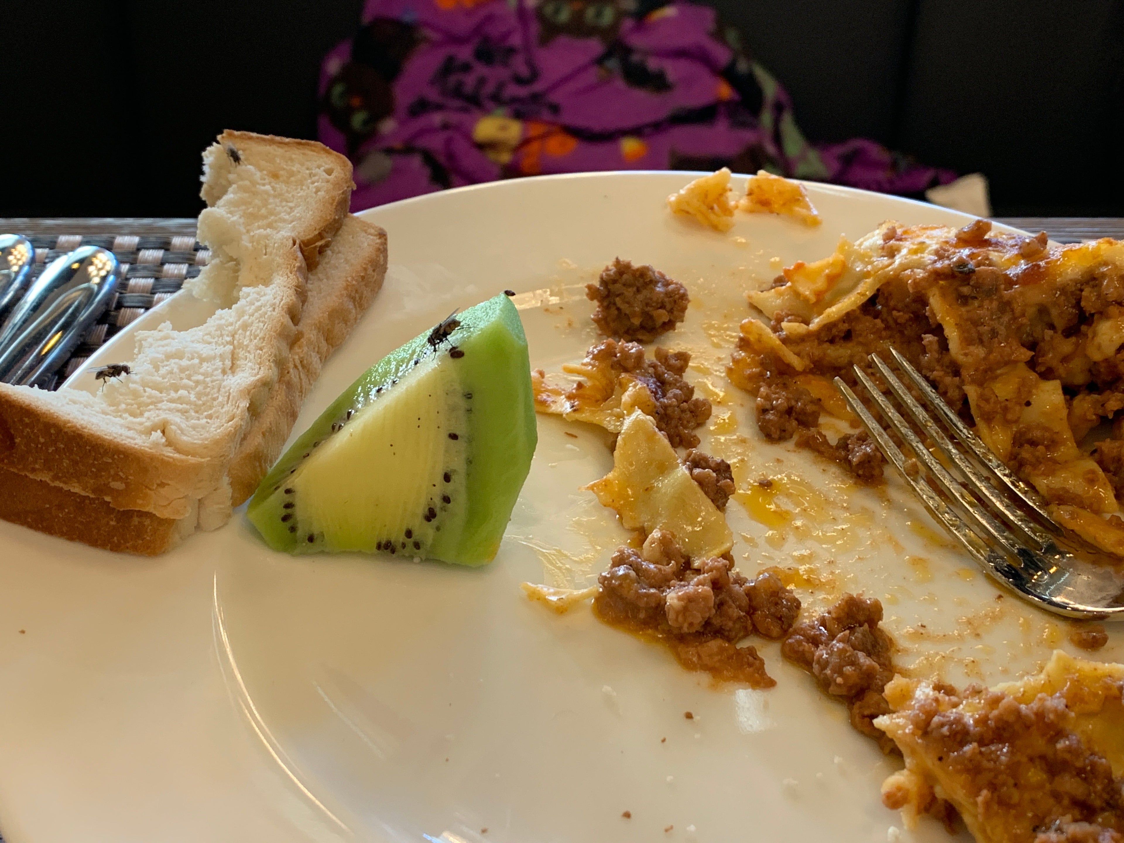 This is where the next unfortunate but regular occurrence began. Presumably because construction had so recently finished, there were quite a few mosquitos and flies present inside the traditional indoor, air-conditioned restaurant.