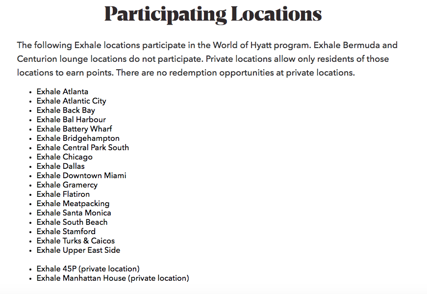 - Hyatt Credit Cardmembers (no longer open to new applicants) will earn three bonus points per eligible dollar spent on their card at participating Exhale locations