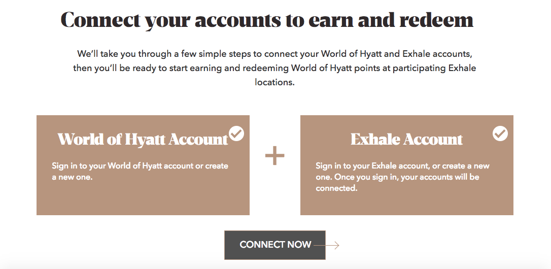 In order to get started with earning or redeeming points at Exhale locations, you need to link your World of Hyatt and Exhale accounts via the partnership splash page: