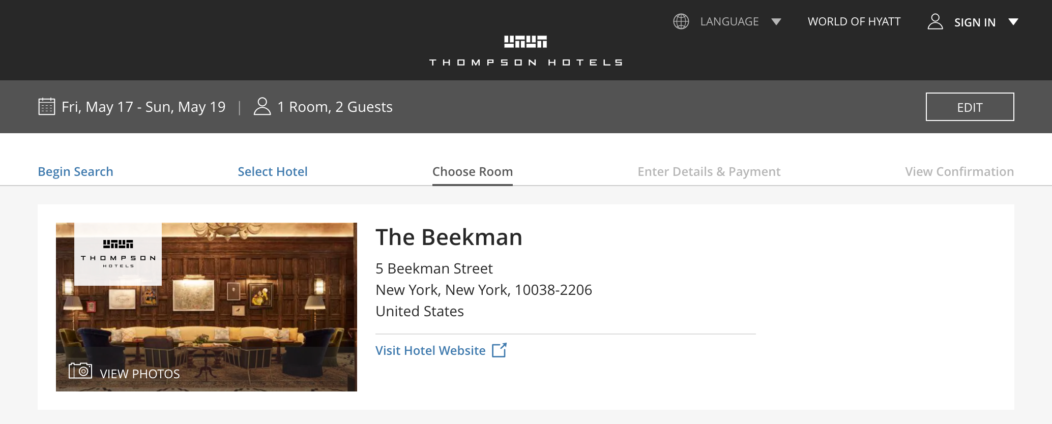 Even though this doesn't officially start until tomorrow, it appears that the functionality is already live on Hyatt's website. In fact, the booking engine for Thompson Hotels now redirects you to Hyatt's website to finalize your reservation.