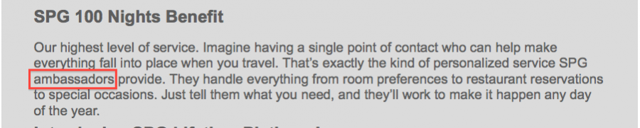 However, at least one TPG reader named Anthony has been left underwhelmed by his own SPG Ambassador experience listing a tally of his benefits in the 74 nights since he's had his own Ambassador: