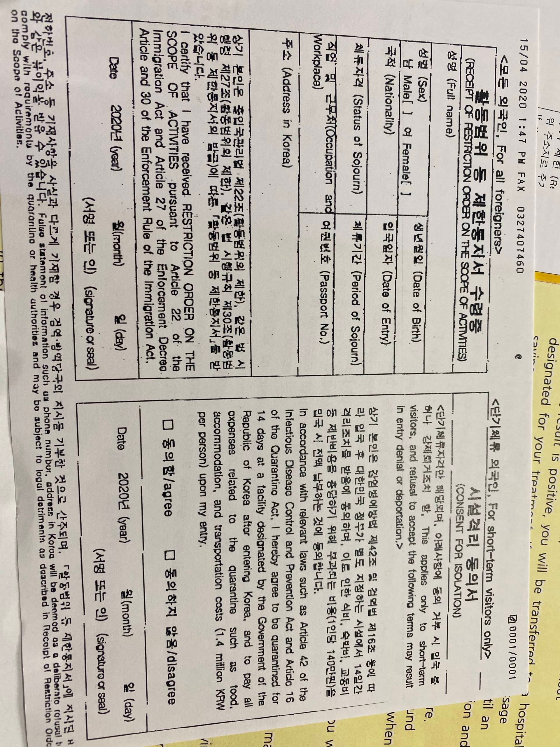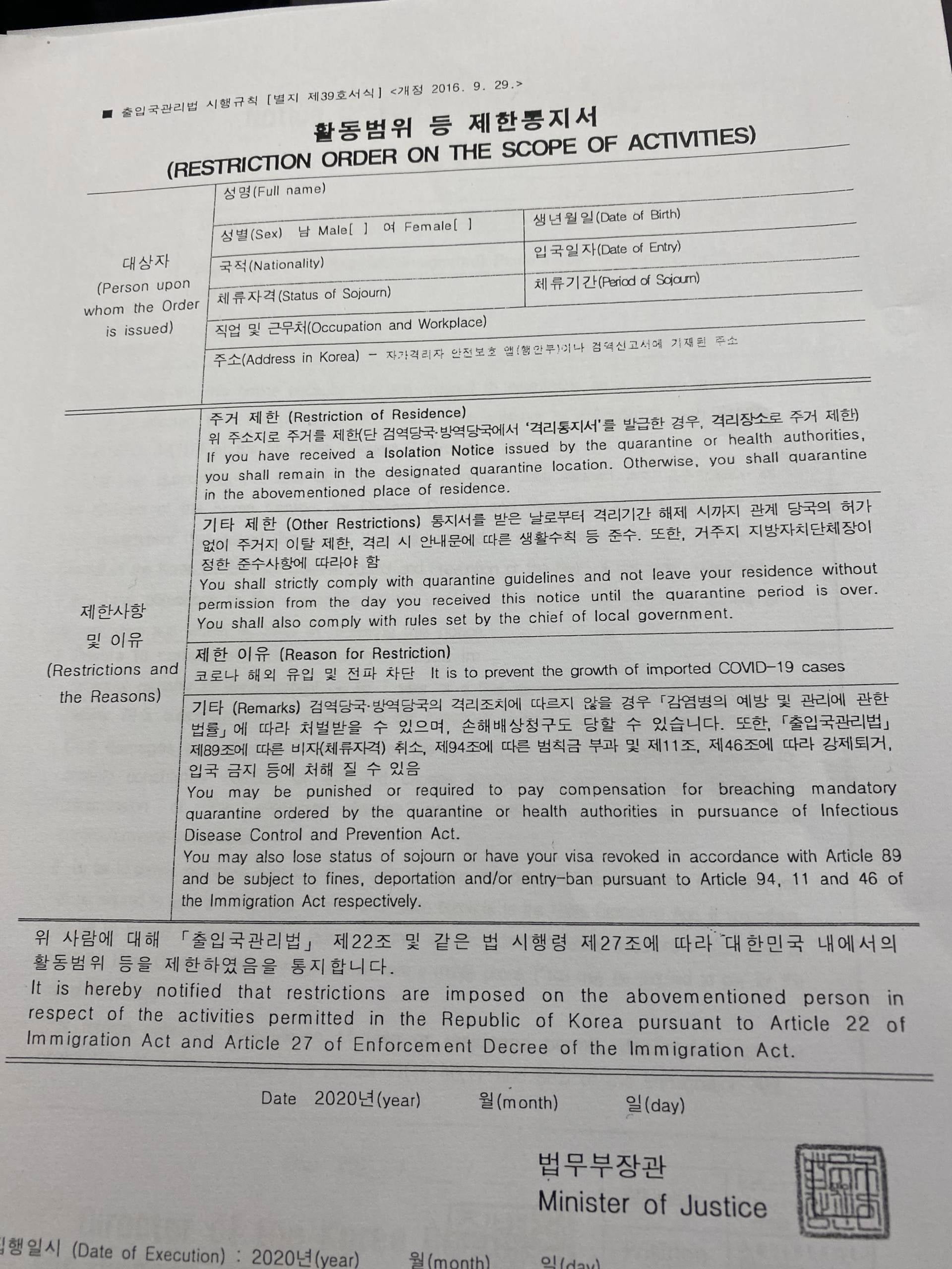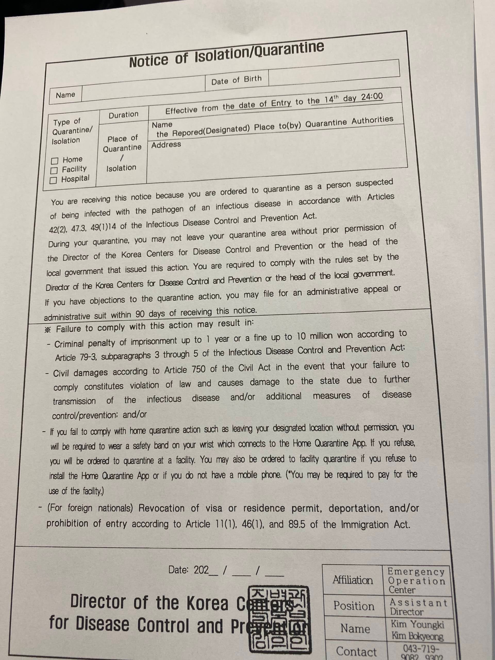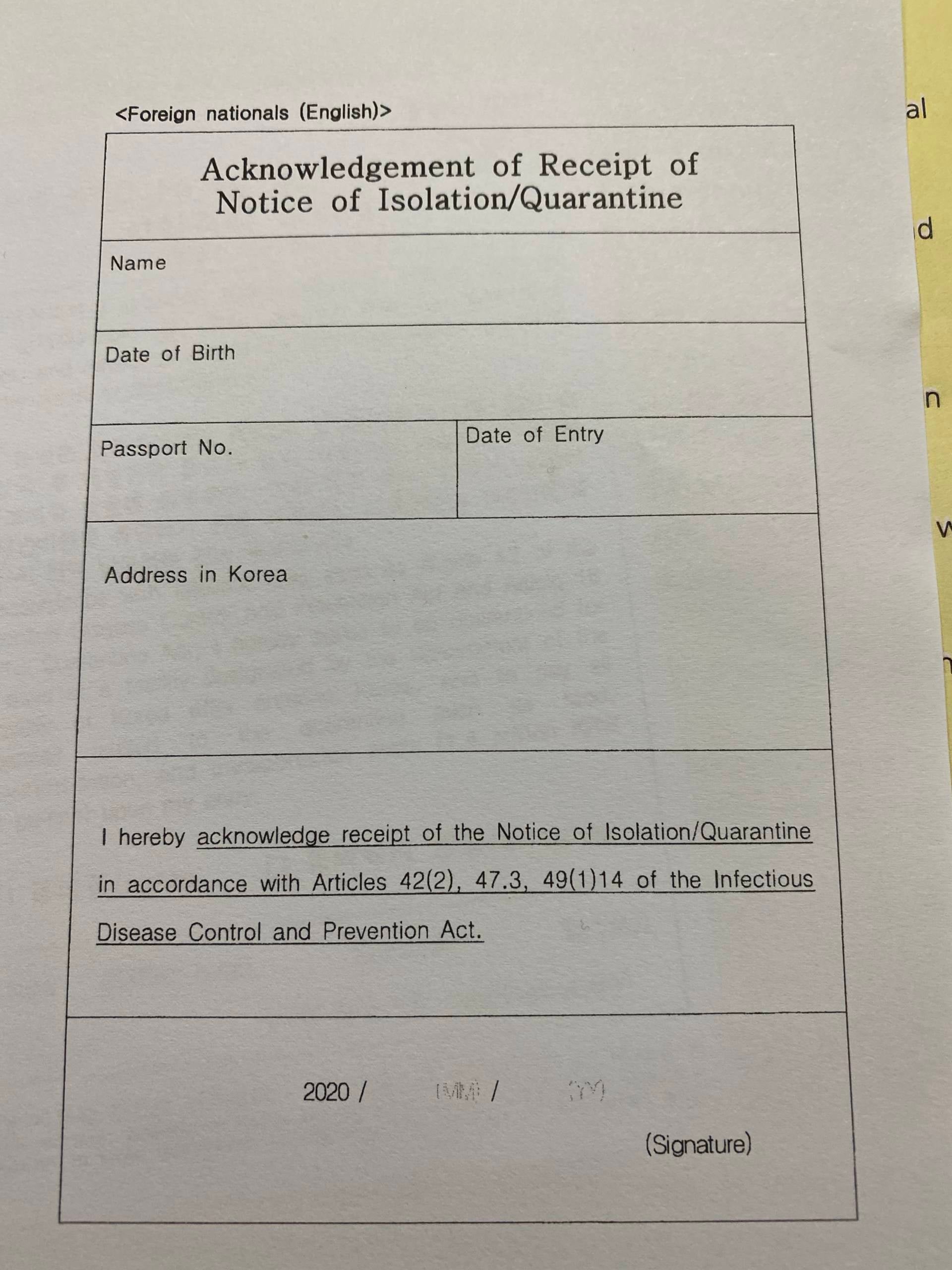While waiting in the isolation area, I had to verify my self-quarantining address with the Korean soldiers.