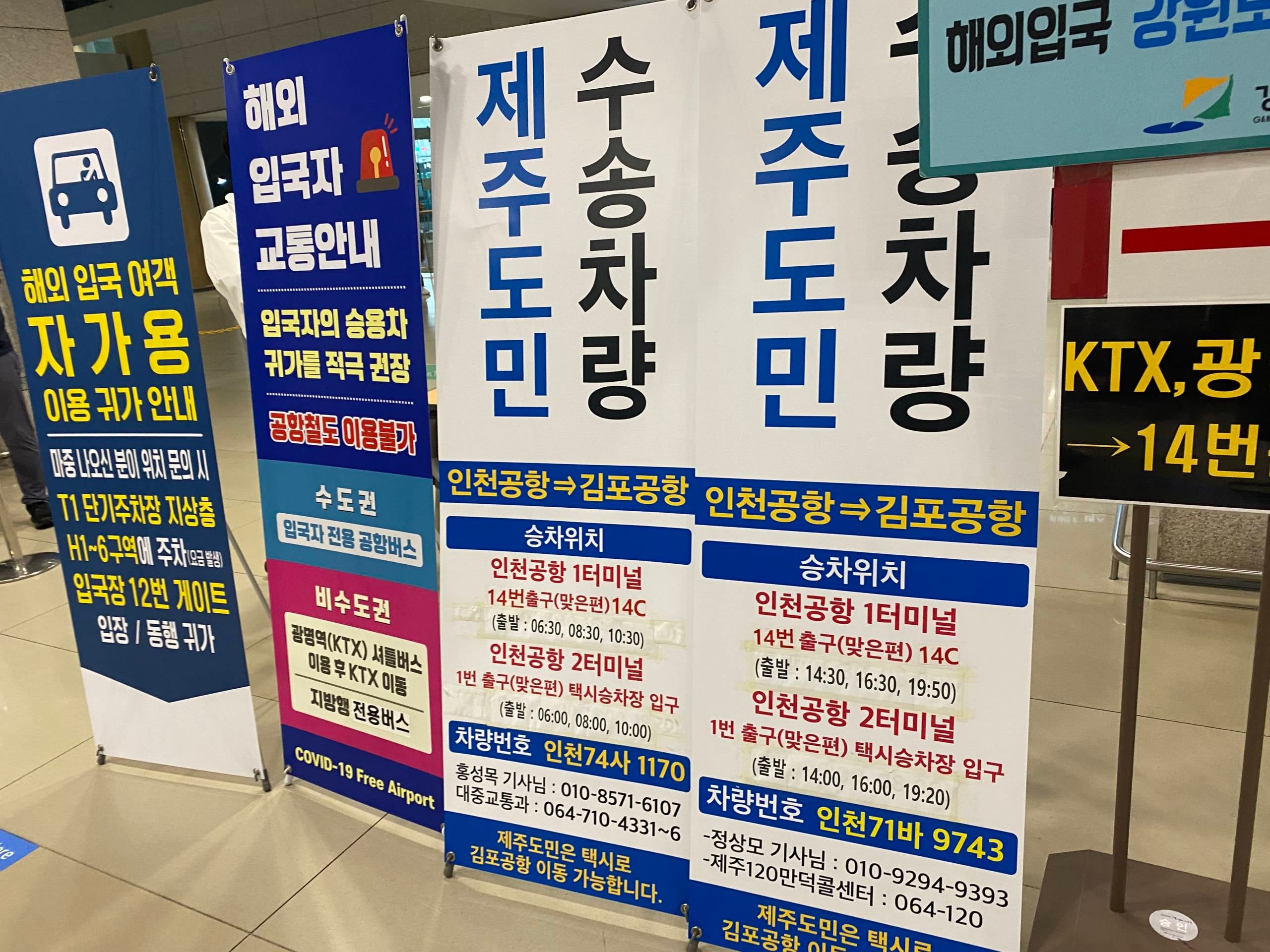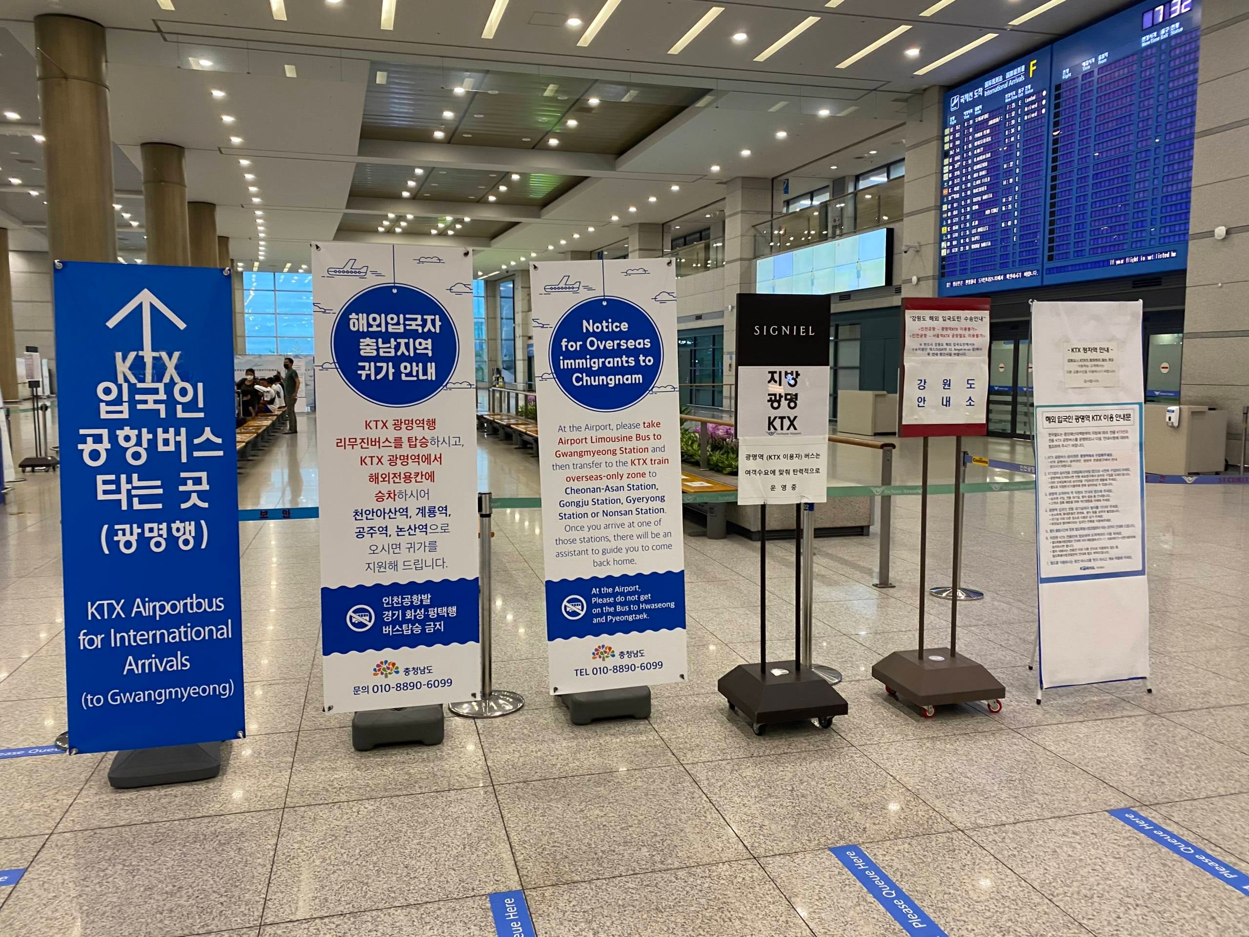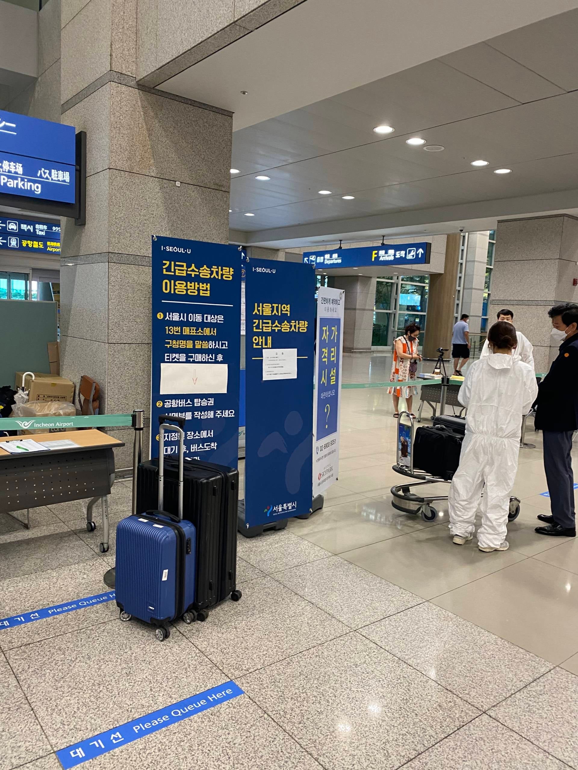 I took all my luggage and went to the counters for those heading to Seoul. Because Seoul is relatively close to the airport, I had multiple transportation options. I could take either a special bus or a government-approved taxi, both designated for individuals coming from abroad who needed to self-quarantine. Under pre-pandemic circumstances, I would have taken the Airport Express train into the city, but that was not permitted as I had to minimize contact with other people.