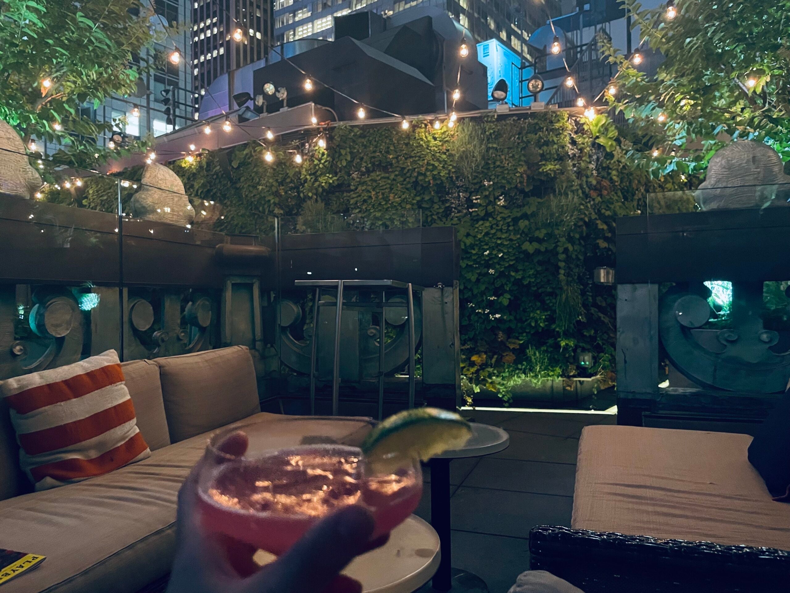 My mom and I sipped our cocktails under fairy lights and vines. We surprisingly didn't have a view of the city — it wasn't a brick wall situation as such, but it's not a place to head for glorious New York panoramas. It was still fun to be on a rooftop, though, and my cosmopolitan certainly didn't disappoint.