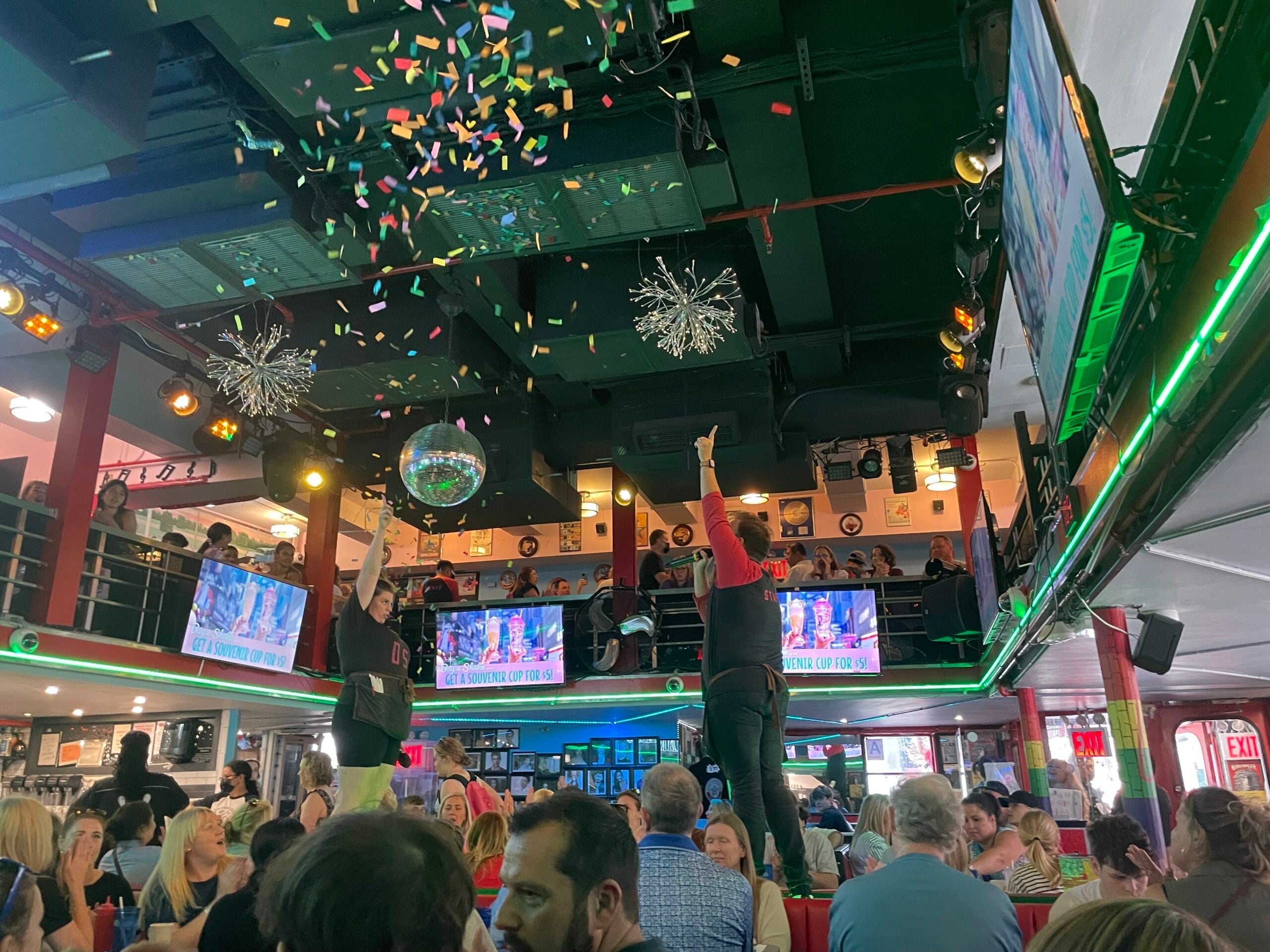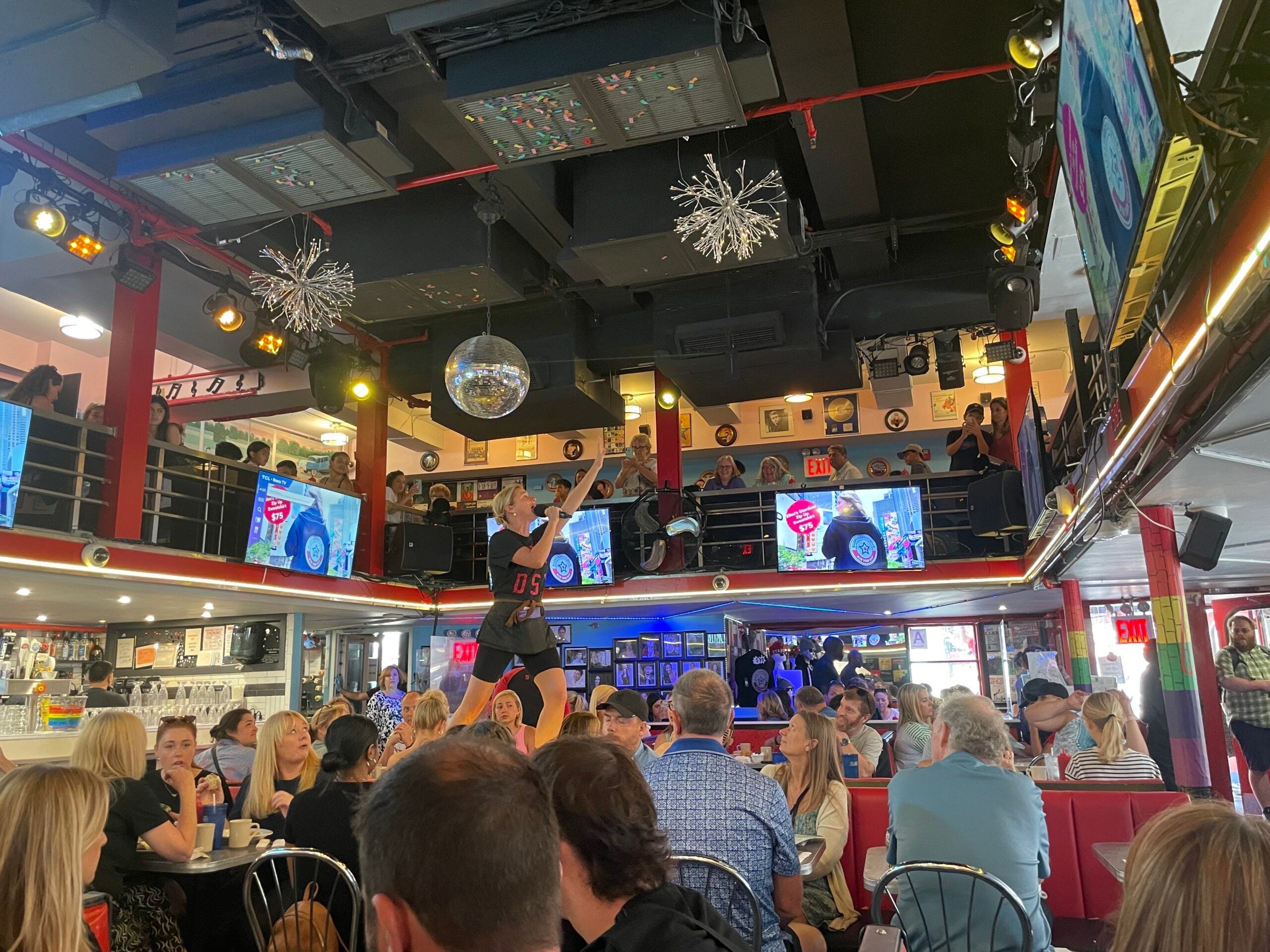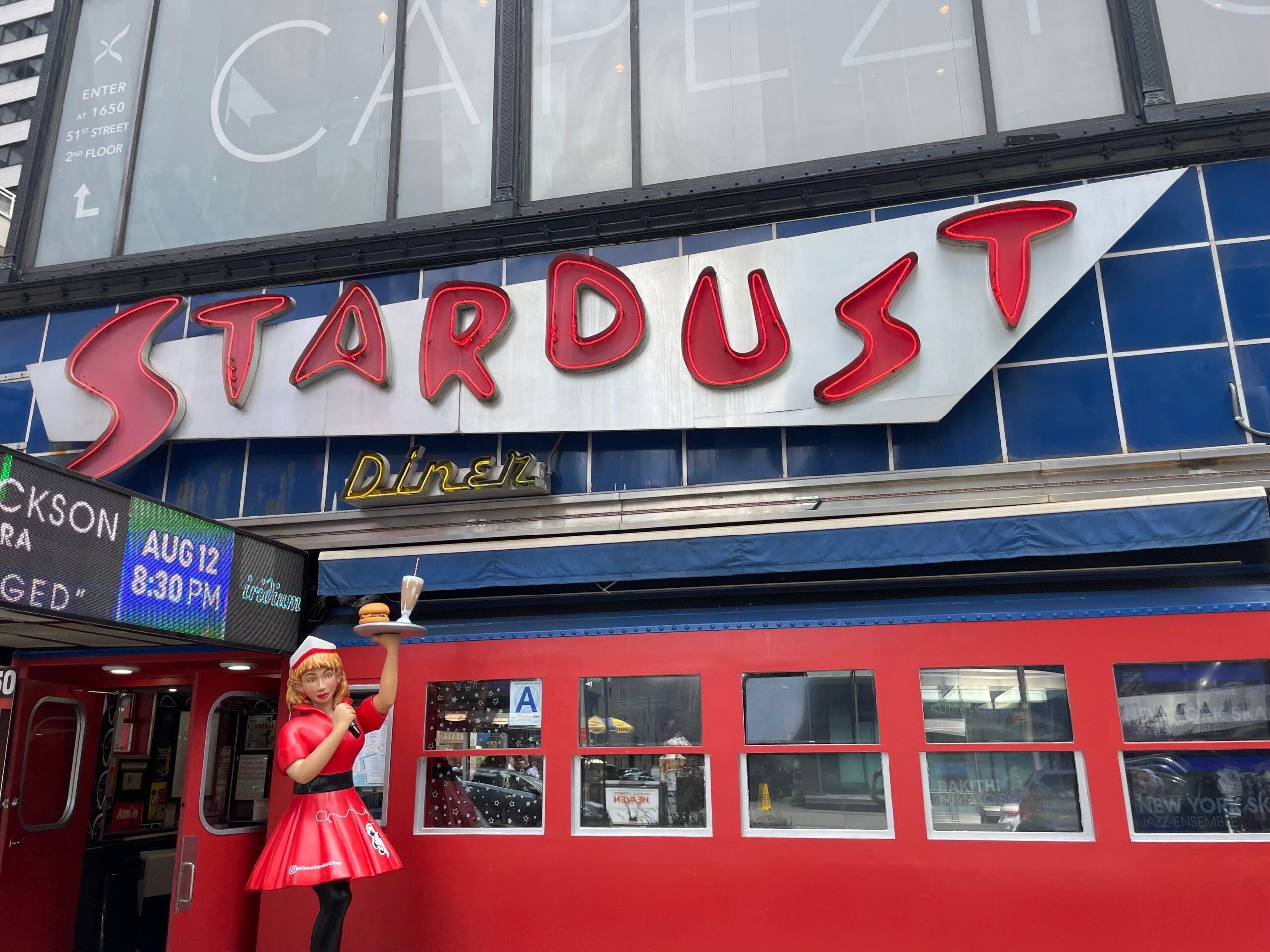 The next morning, we headed to perhaps the tawdriest place in Times Square: Ellen's Stardust Diner. The diner isn't your average mom-and-pop joint. It's a musical diner where waitstaff sing show tunes while serving pancakes. Ellen's Stardust Diner aims for waitstaff to go "from burgers to Broadway," which many Stardust alumni have done. In 2019, 18 servers were cast in Broadway shows, one of which was — rather fittingly — "Waitress."