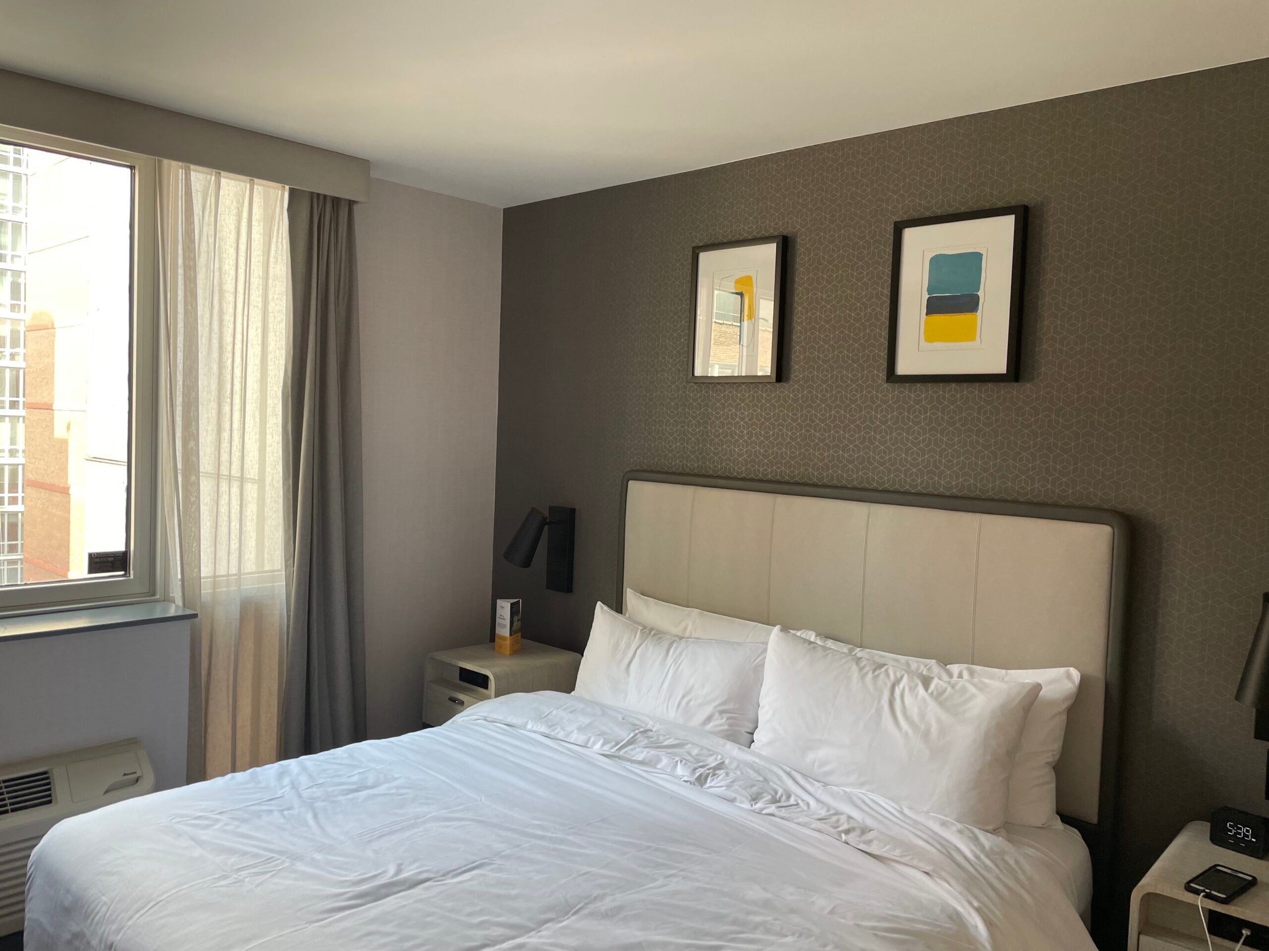 Our room had a generic, chain hotel feeling: neutral, functional — and compact. If you want a room with a view, you're better off in a high-rise hotel closer to the nucleus of Times Square.