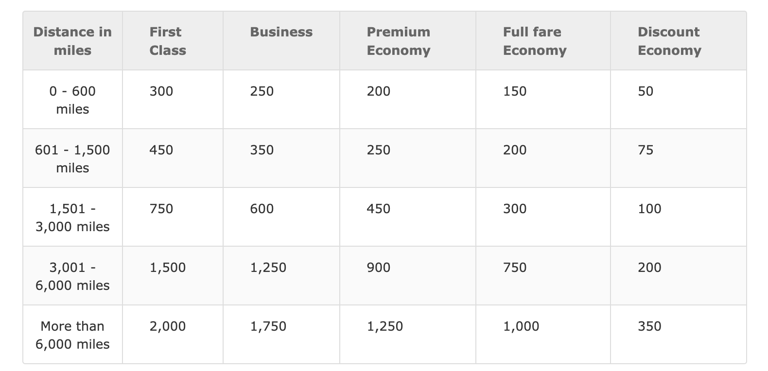 Members can also credit flights operated by other Oneworld airlines at the following rates: