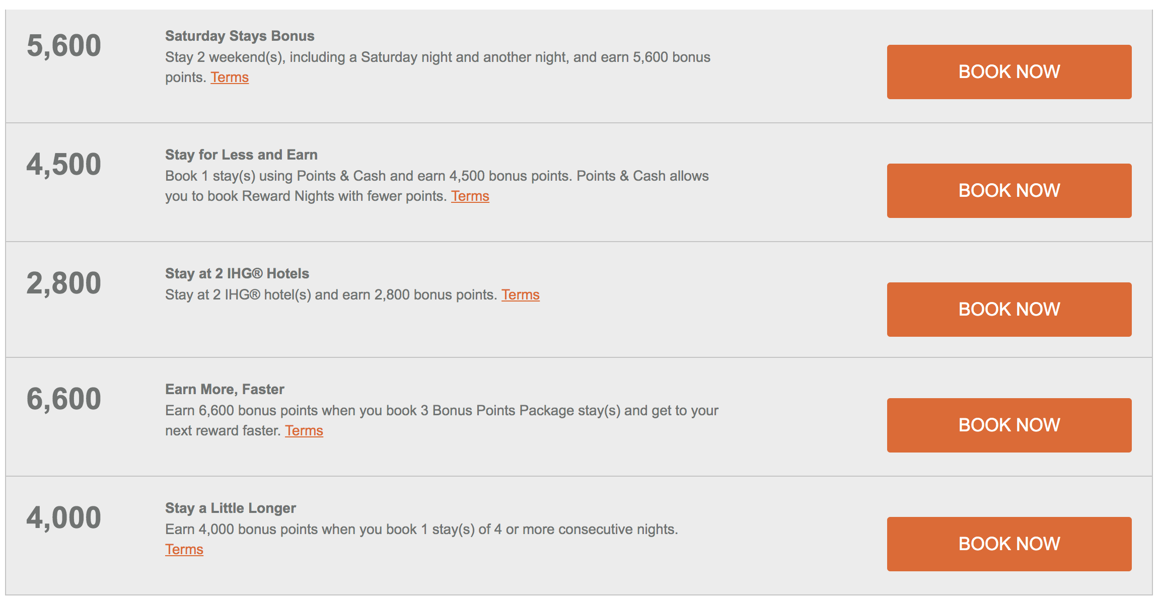 - Spend on your IHG Rewards Premier Credit Card -- Book and pay for one stay with your IHG Rewards Club Select Credit Card and earn 1,500 bonus points.