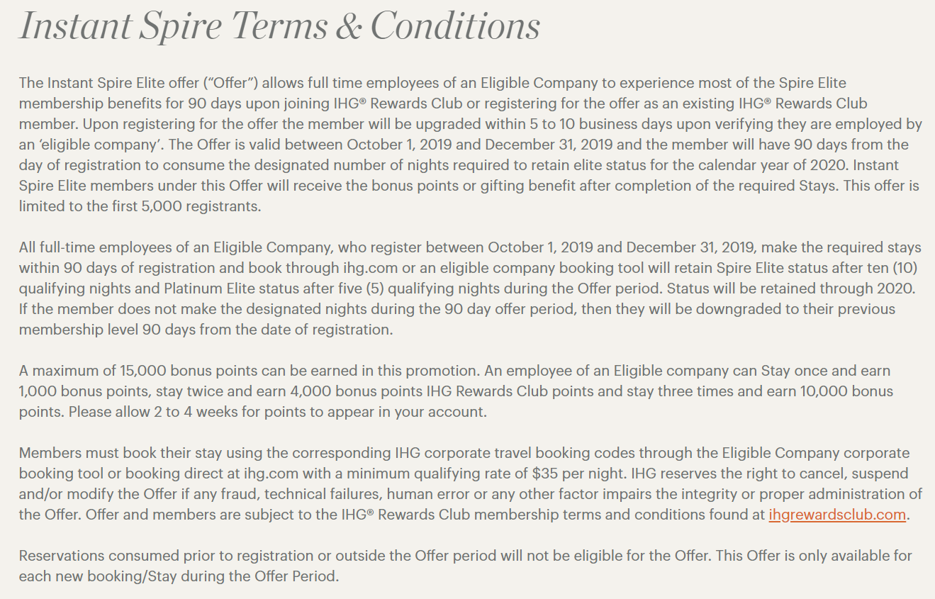 - Instant Spire Elite members under this offer will receive the bonus points or gifting benefit after completion of the required nights.