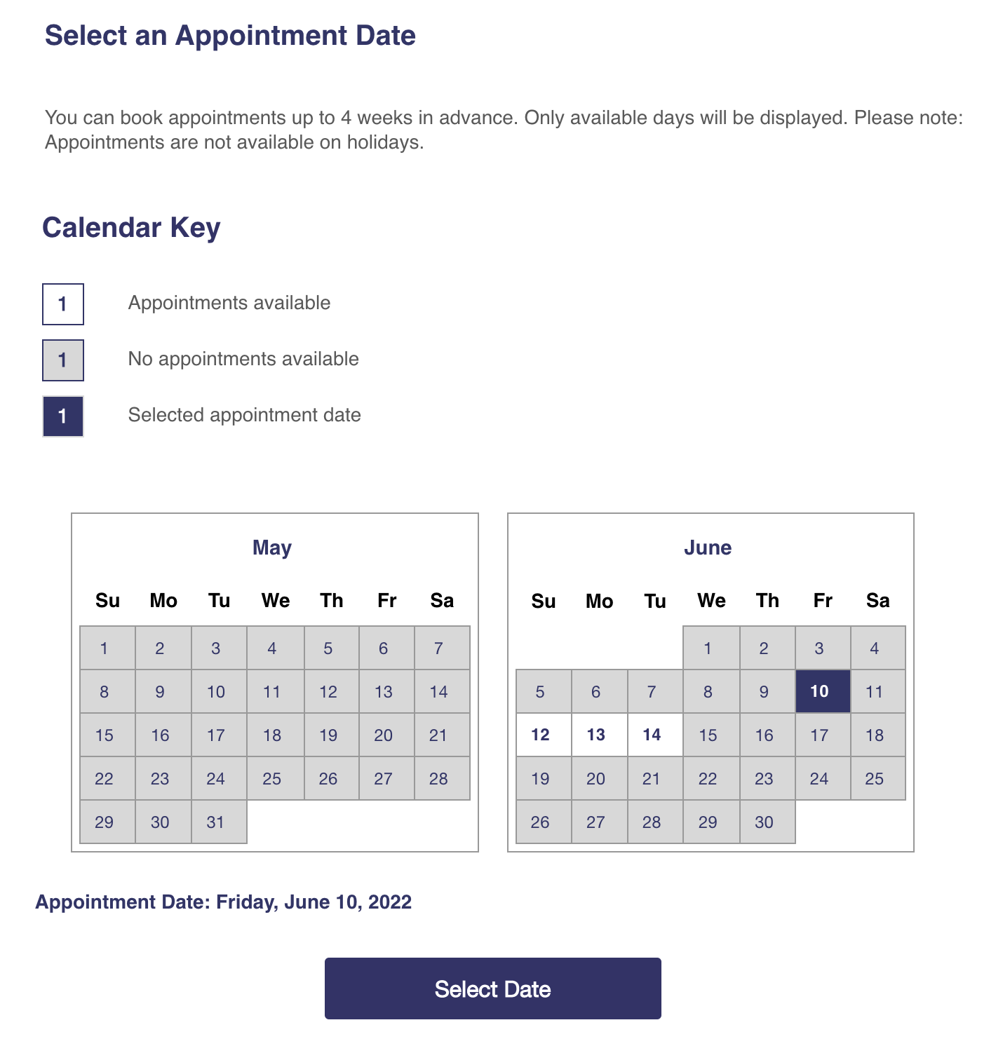 Elsewhere in the country, you'll find similar wait times for appointments. In Los Angeles, appointments were not available until June 14 and in New York City, the soonest available appointment was June 10.