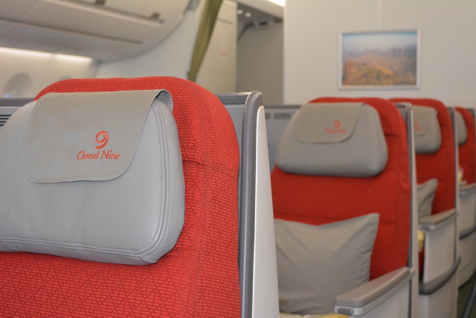 Each seat comes with a universal power socket and a USB port, as well as a lamp and in-flight entertainment remote control. The cabin itself feels very spacious, mainly due to the absence of the central overhead lockers, as you can see below.
