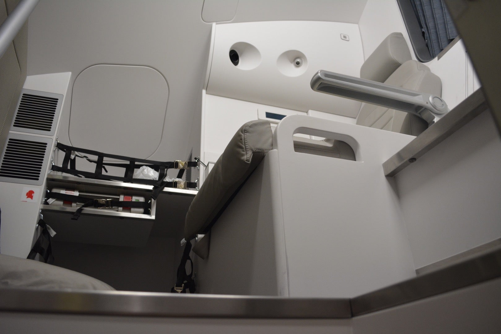 Next, a peek at the crew rest area, featuring bunks and a seat for those who are off-duty.