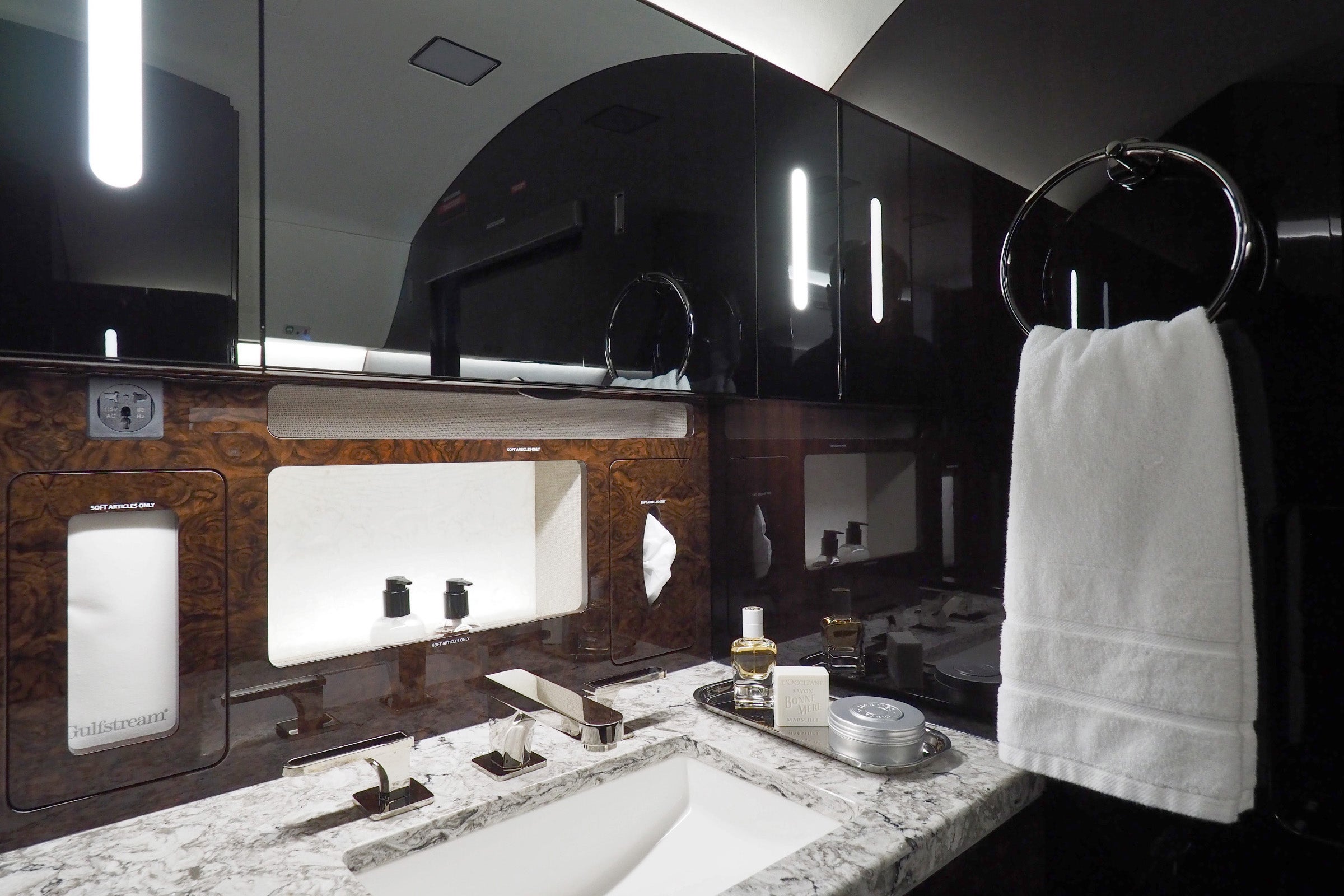 Customers can customize the interiors as they wish, but many of the features were nearly identical on both G500s I visited, including the lie-flat cabin seating and rear lavatory.