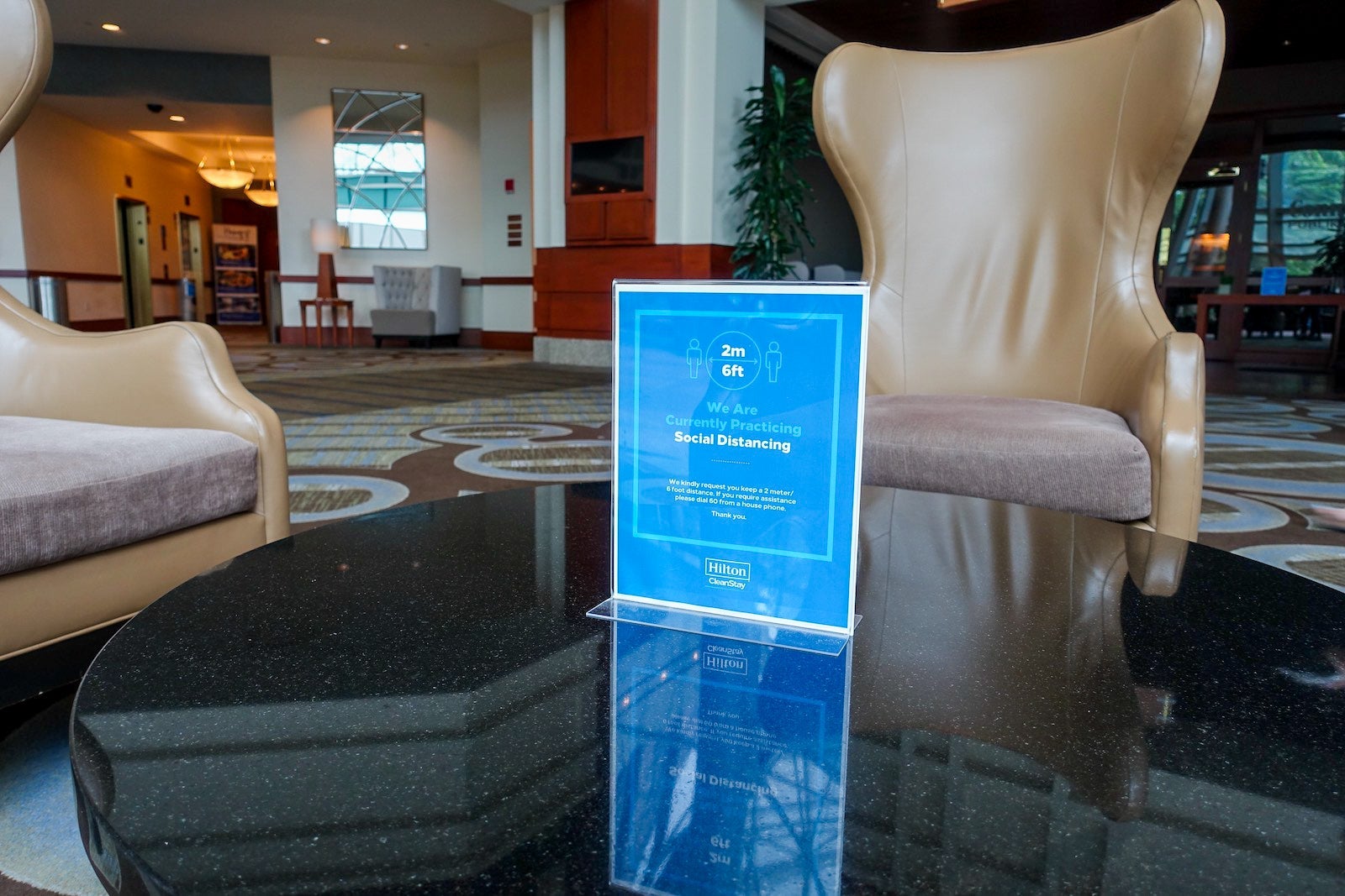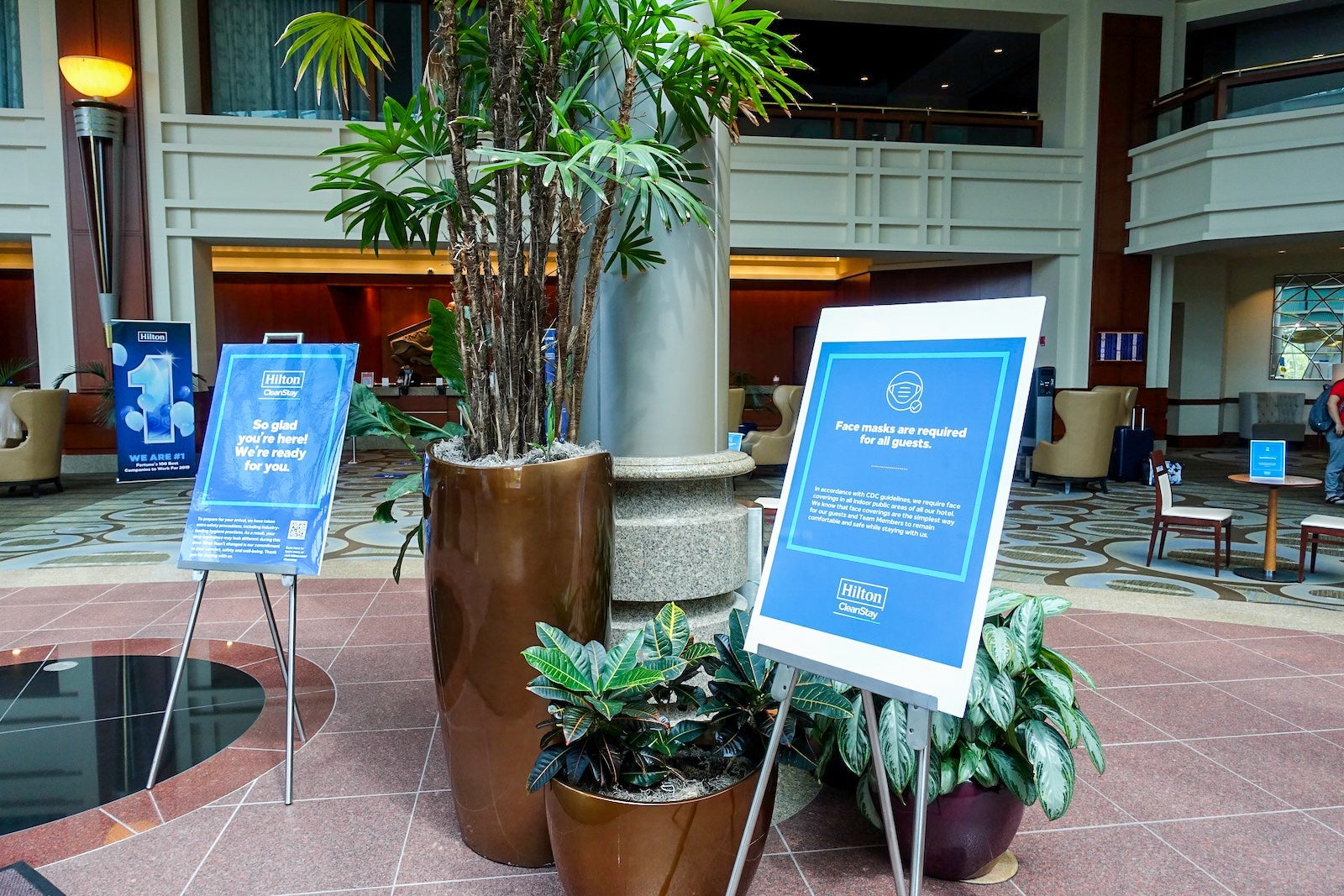 Throughout the hotel were signs reminding guests to wear their masks and practice social distancing. Additionally, Hilton has increased the frequency of cleaning public areas. Unlike in the past when these areas were cleaned primarily overnight, housekeeping personnel is much more visible now during the day.