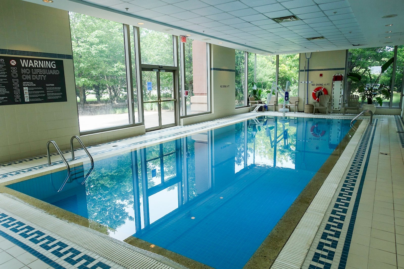 Up to eight people were allowed to be at the pool area at a time. The whirlpool was closed at this property, but that was due to state regulations, not Hilton's policy.