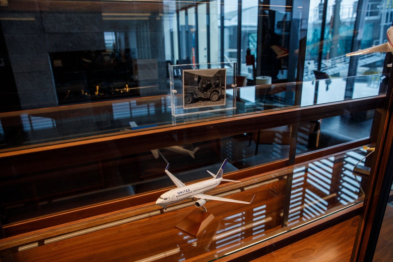 The materials of these low chairs felt soft to the touch, with power ports hidden alongside the tables. I could easily see myself relaxing in one for a while, watching a variety of aircraft visit Boeing.