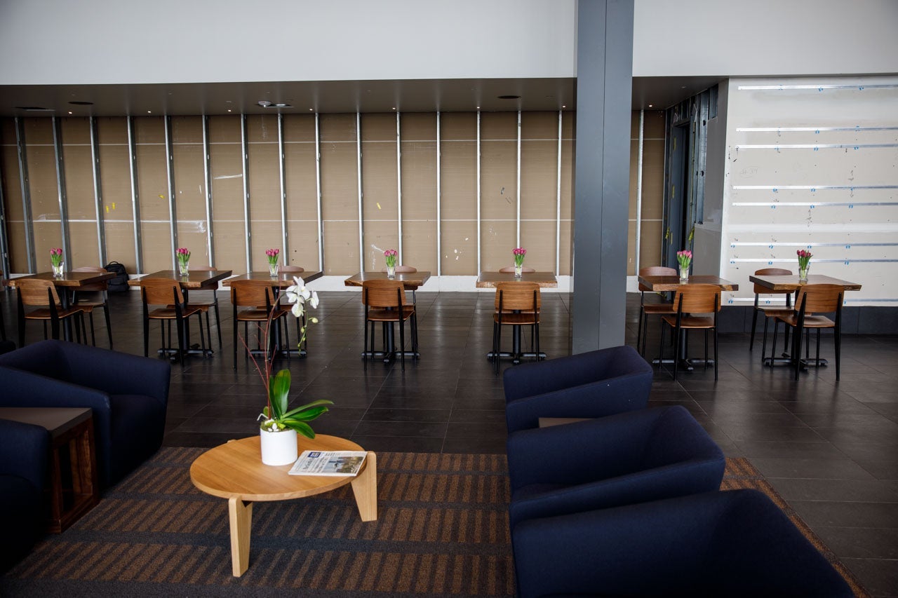 Opposite the main window of the air field will be the Upper Case wine bar that will be installed, left, as well as table seating.