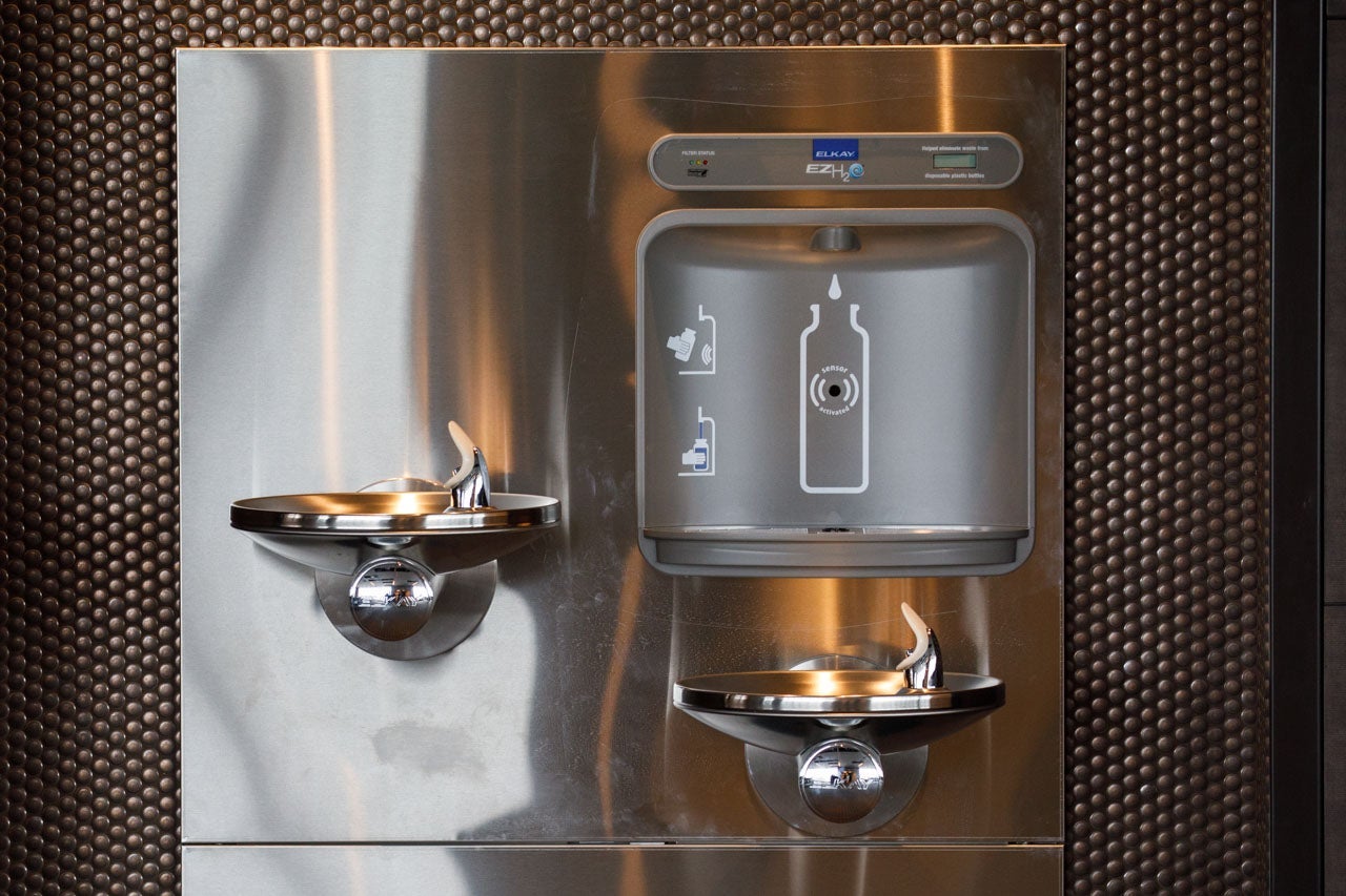 As requested from my post in the TPG Lounge there are indeed refillable water bottle stations.