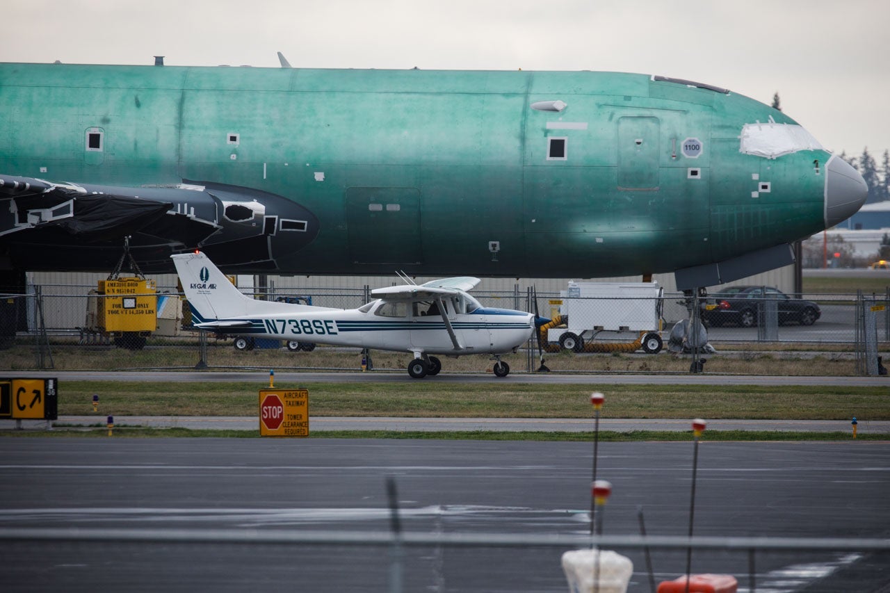 While saving time in traffic will be the most important factor for many, perhaps the greatest draw for some #AVGeeks will be the chance to see aircraft under construction like this USAF KC-46 refueling tanker sitting on the tarmac – while a Cessna 172N passes by.