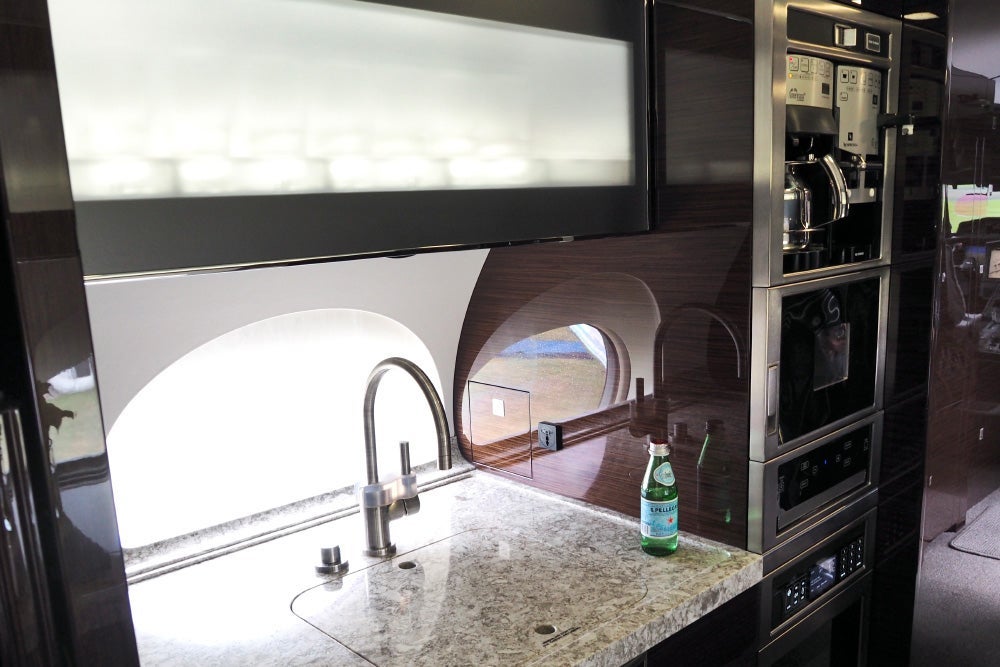 There's even a luxurious crew rest, with a slide-out wall and a flat-bed leather seat.