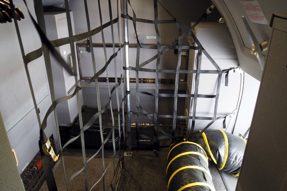 The rear lav also provides access to the luggage compartment, which is located at the far back of the plane.