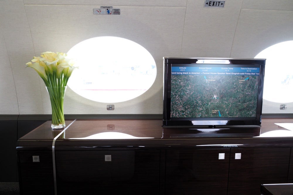There are fold-out displays throughout the cabin, in addition to this larger panel across the aisle from the table.