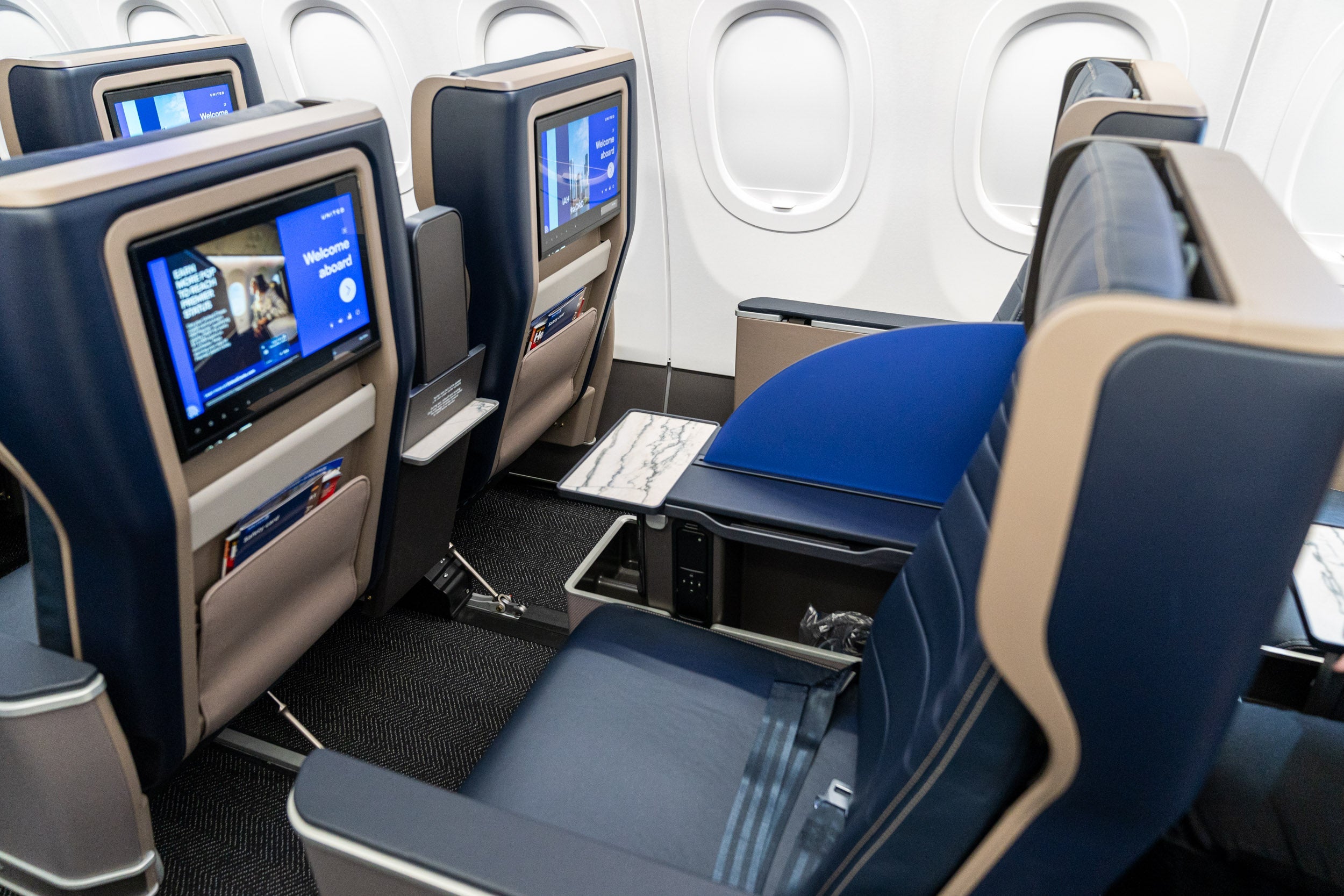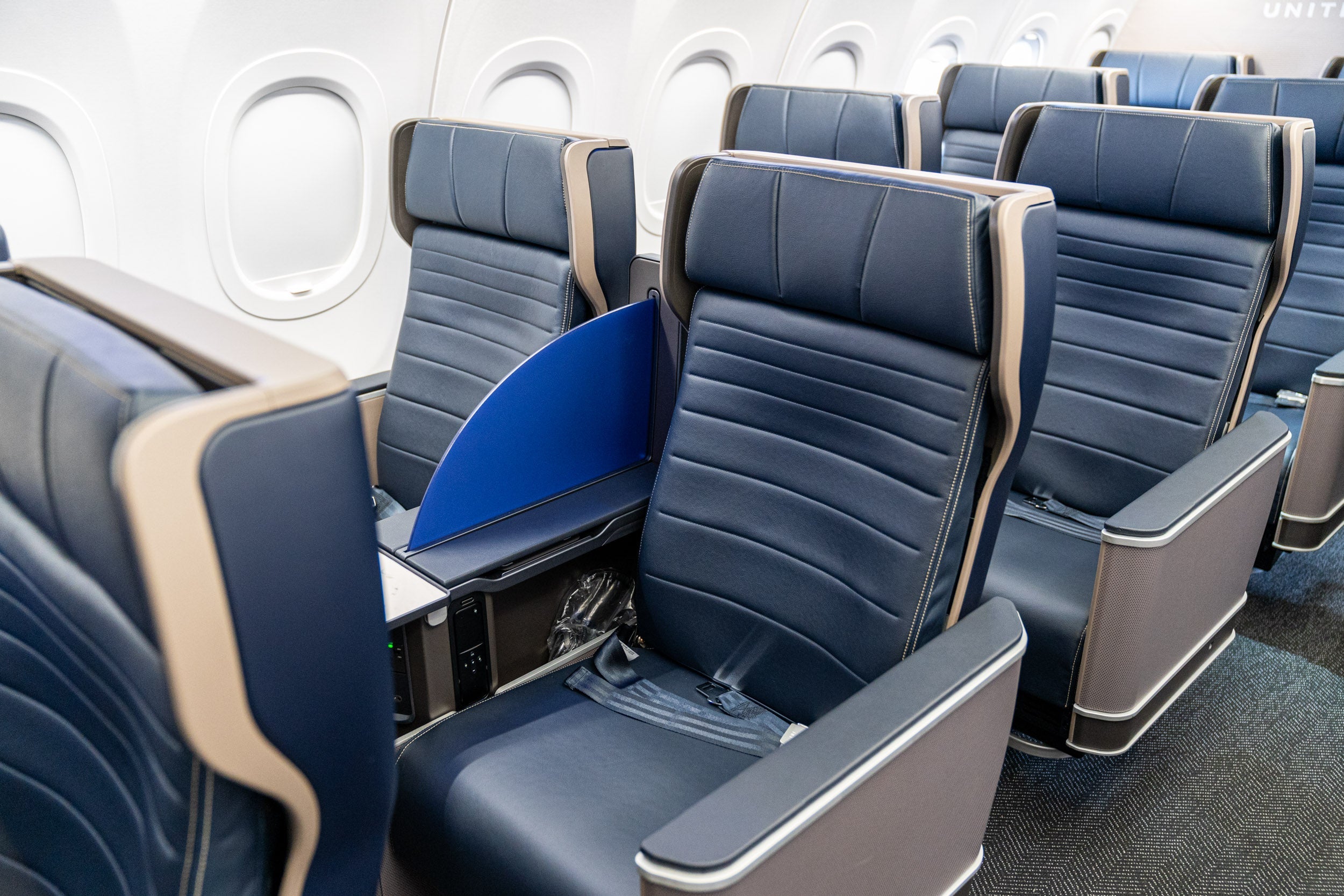 The 20 first-class seats feature a new design for United, the Safran Z600 model, which includes a barrier between seats for a bit more privacy.