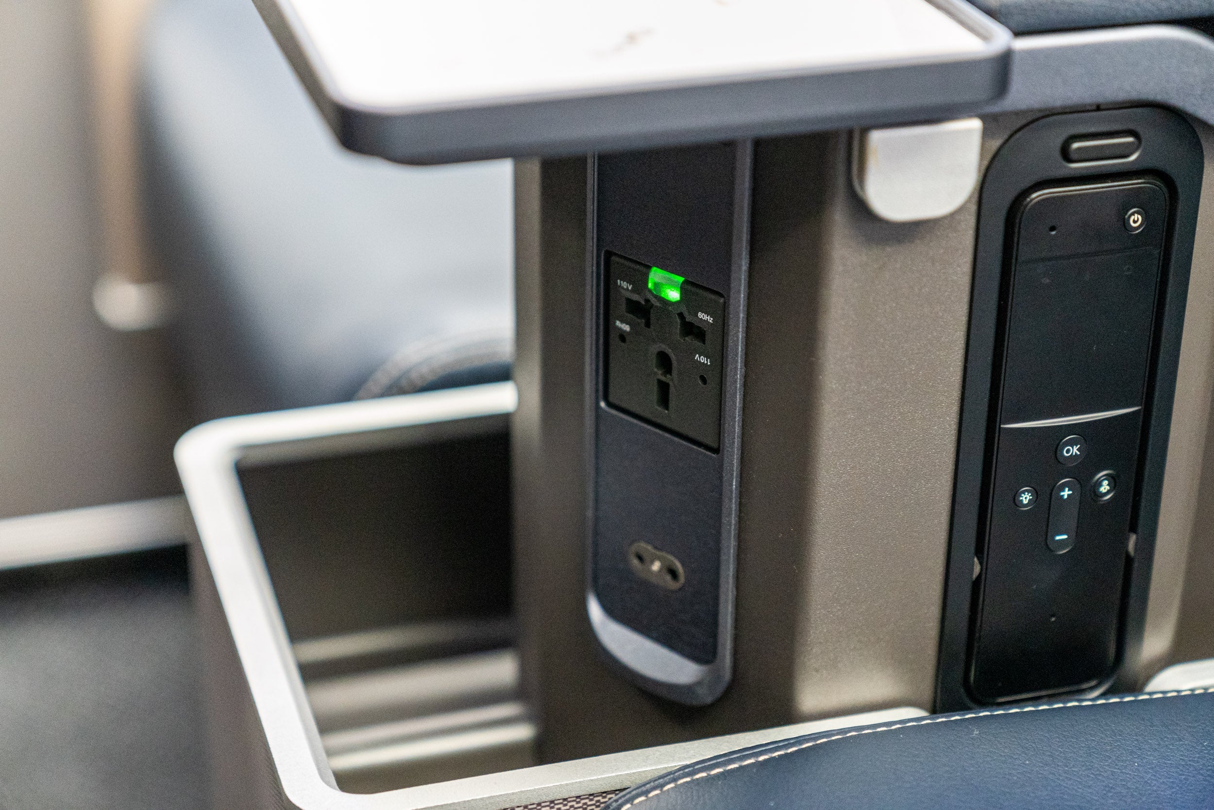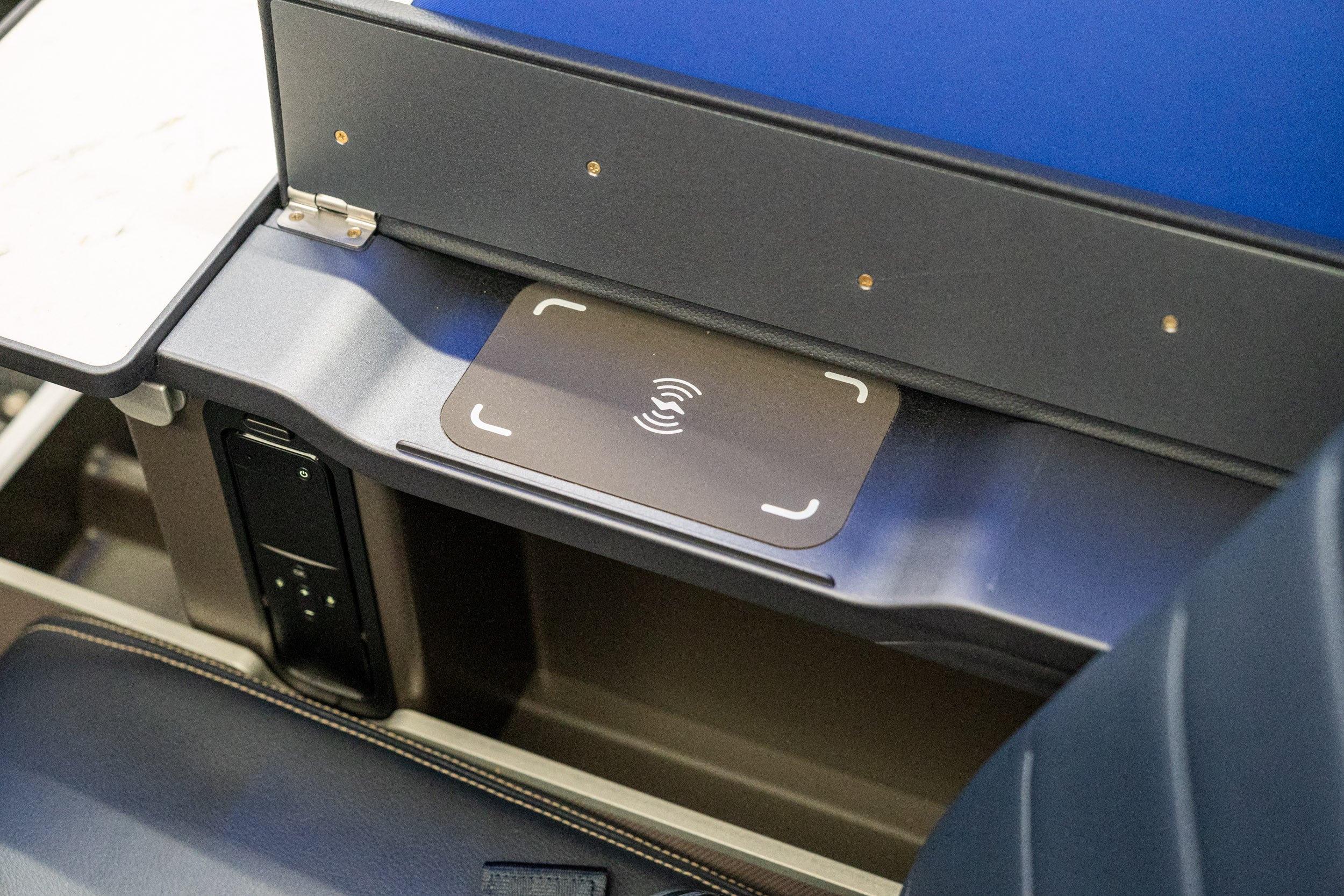 First-class seats also have wireless charging pads in the armrests.