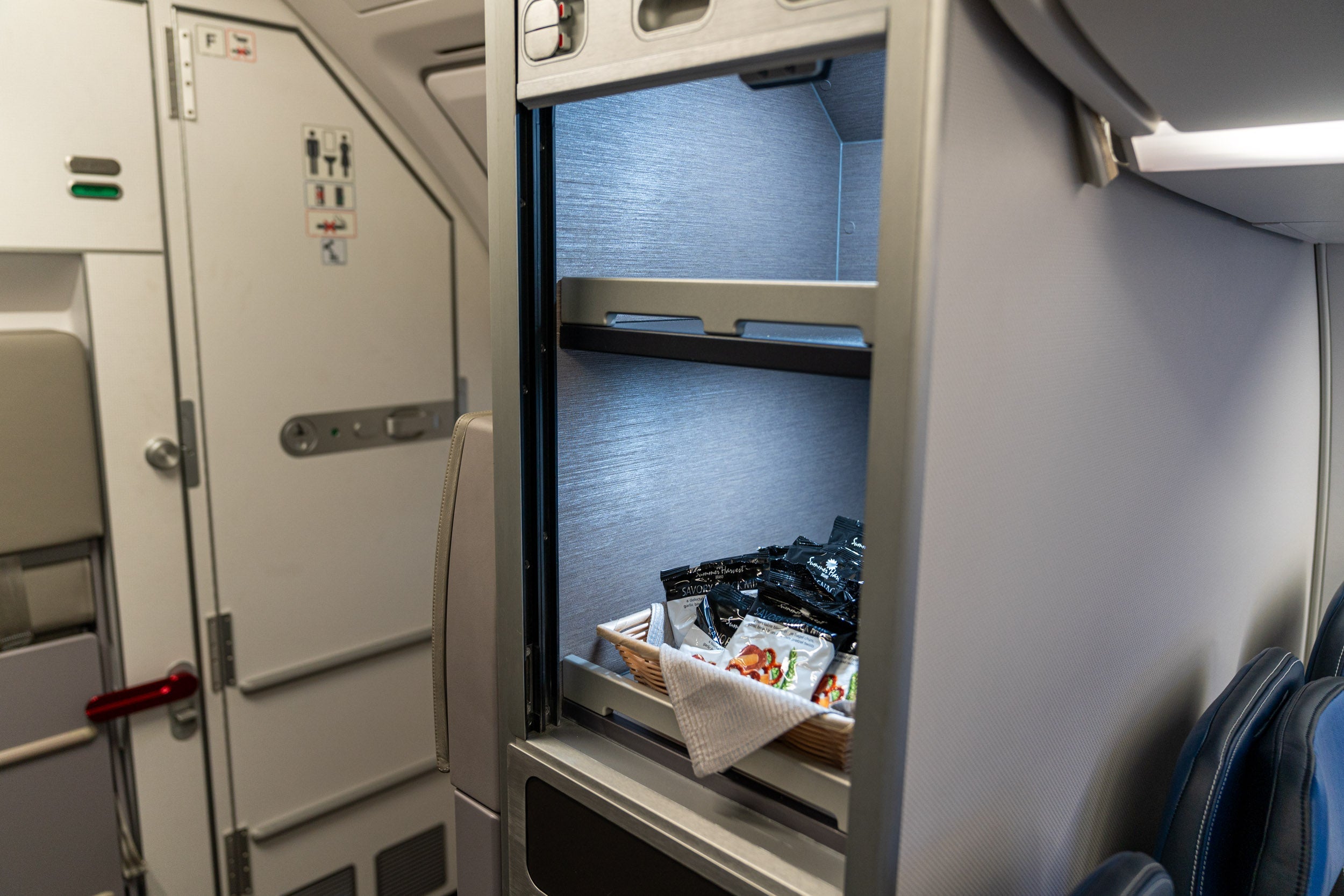 It's a small-ish cabinet and will be first-come, first-served. Still, it'll be a pleasant option for longer flights after the main drink and snack service.