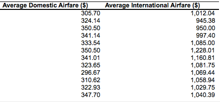 What’s more, the cheapest international airfare averages – those found in February and March – were around the $950 mark, so leaving the country is getting more expensive.